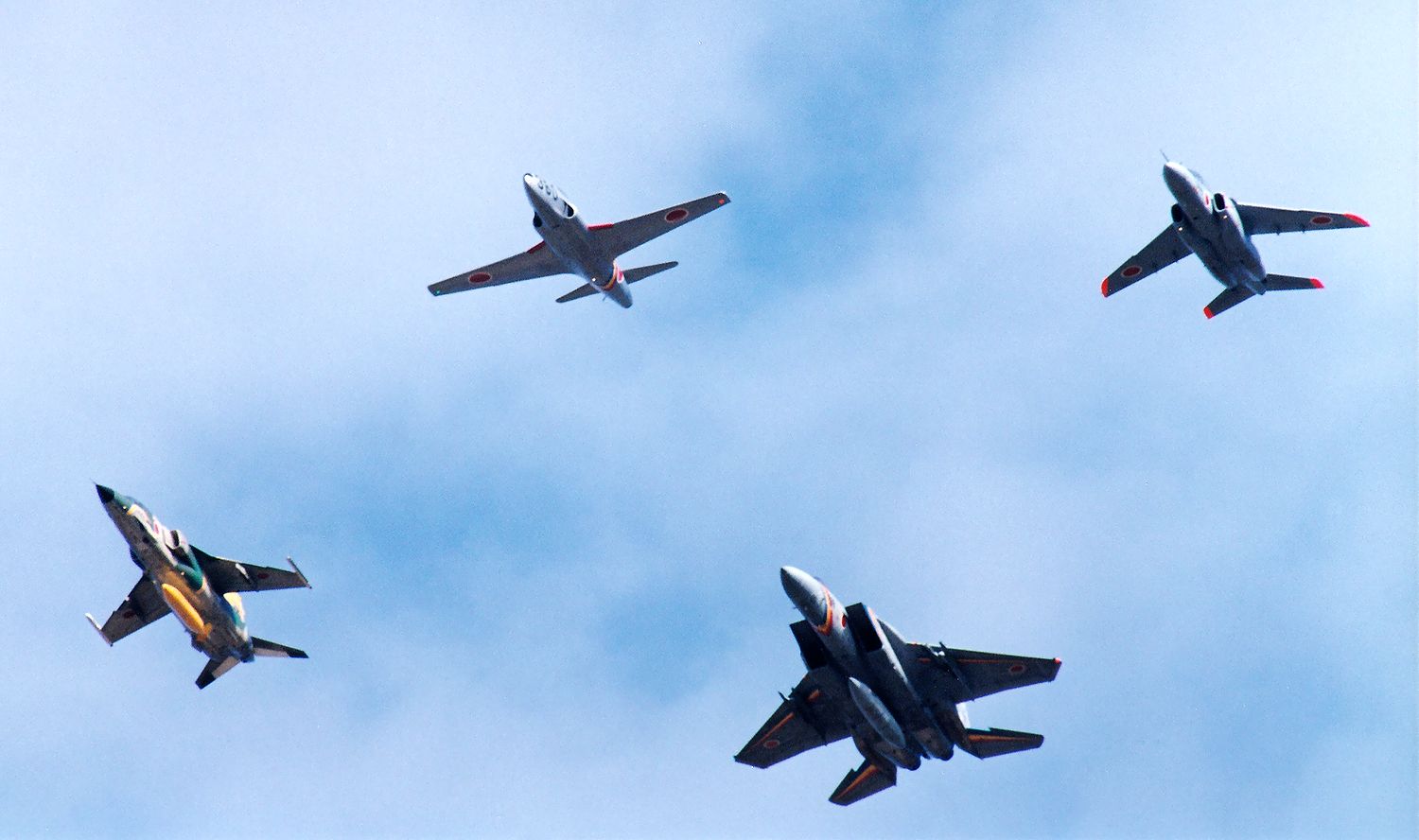 これらの機体は、築城基地上空を大編隊で「50」の文字を描きながら飛行しました。 |