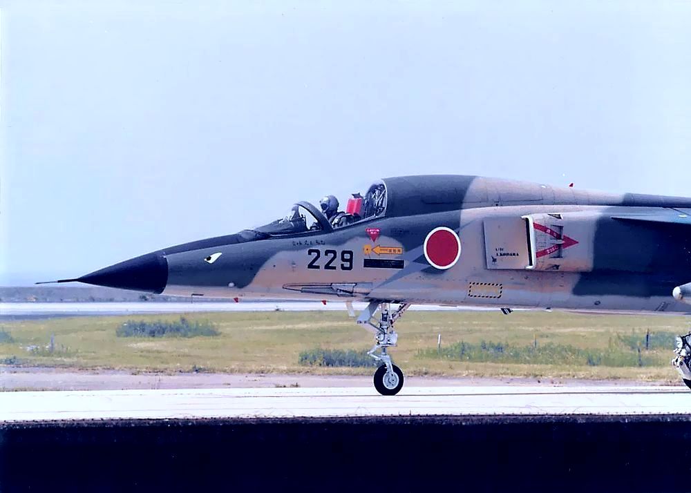 | これは1996年12年07日に、新田原基地のRW10エンドで撮影した、三沢基地所属の8SQのT2連絡機とF1戦闘機です。 |