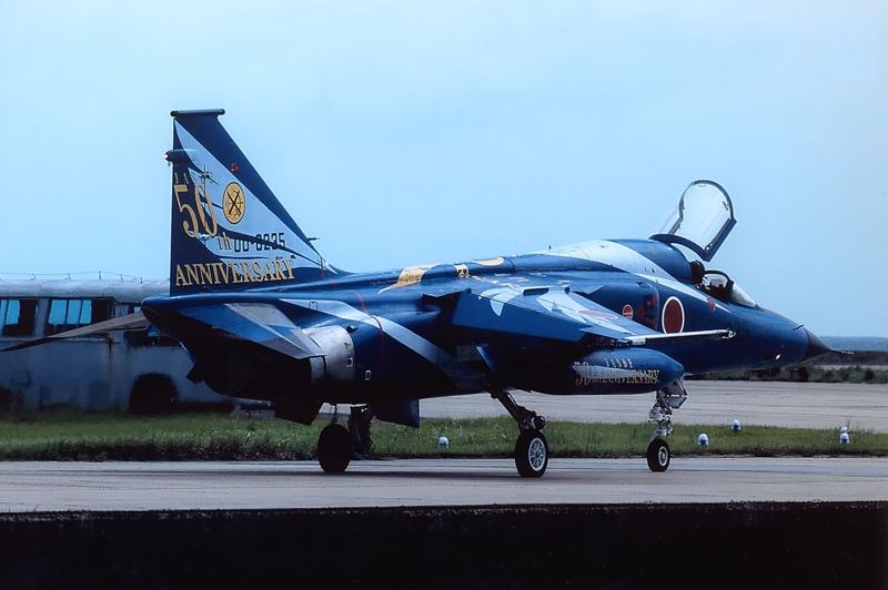 | 2004年07中旬に築城基地で撮影した、航空自衛隊創設50周年記念塗装の6Sq-F1戦闘機のタキシ―です。 |