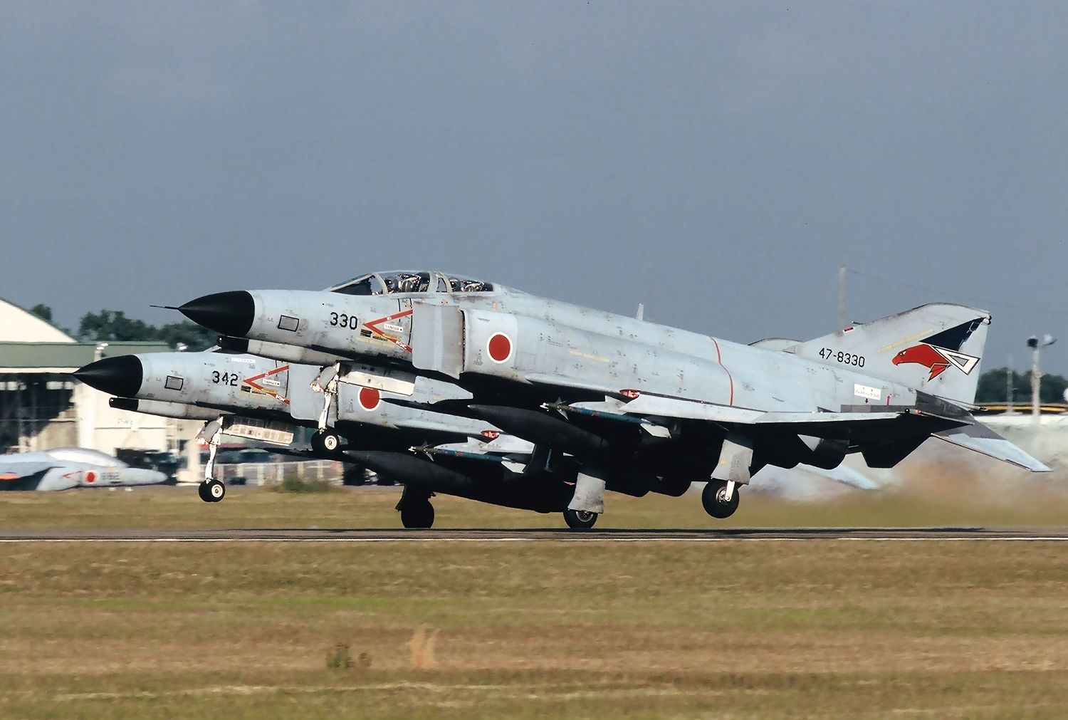 | これは2001.11.14に新田原基地で撮影した、那覇基地所属の302SQーF4EJ改の編隊離陸です。 |