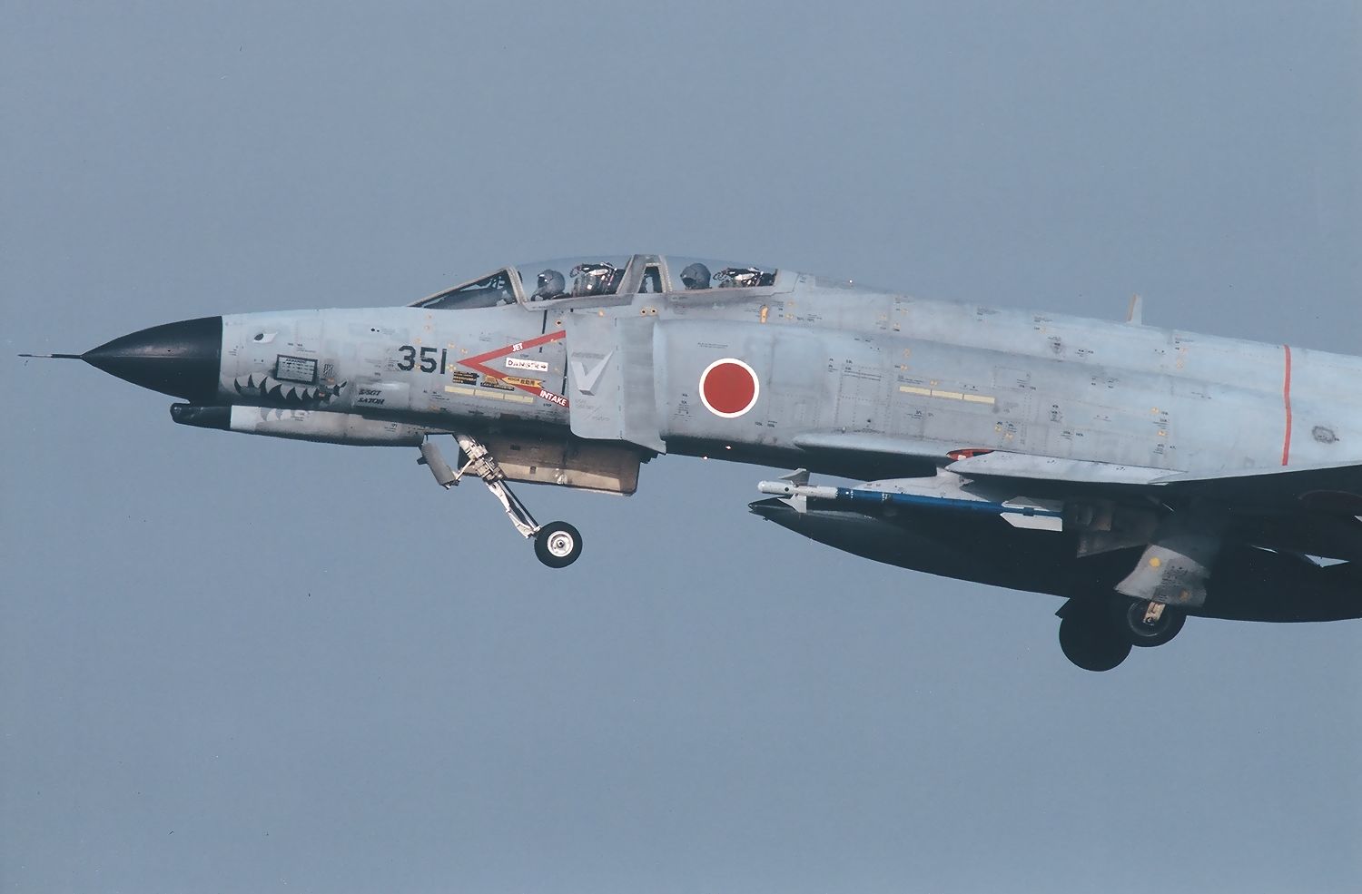 | これは2002.10.15に新田原基地で撮影した、機関砲の射撃訓練に使用される標的曳航装置(AGTS)を装着したF4EJ改とその僚機の離陸です。 |