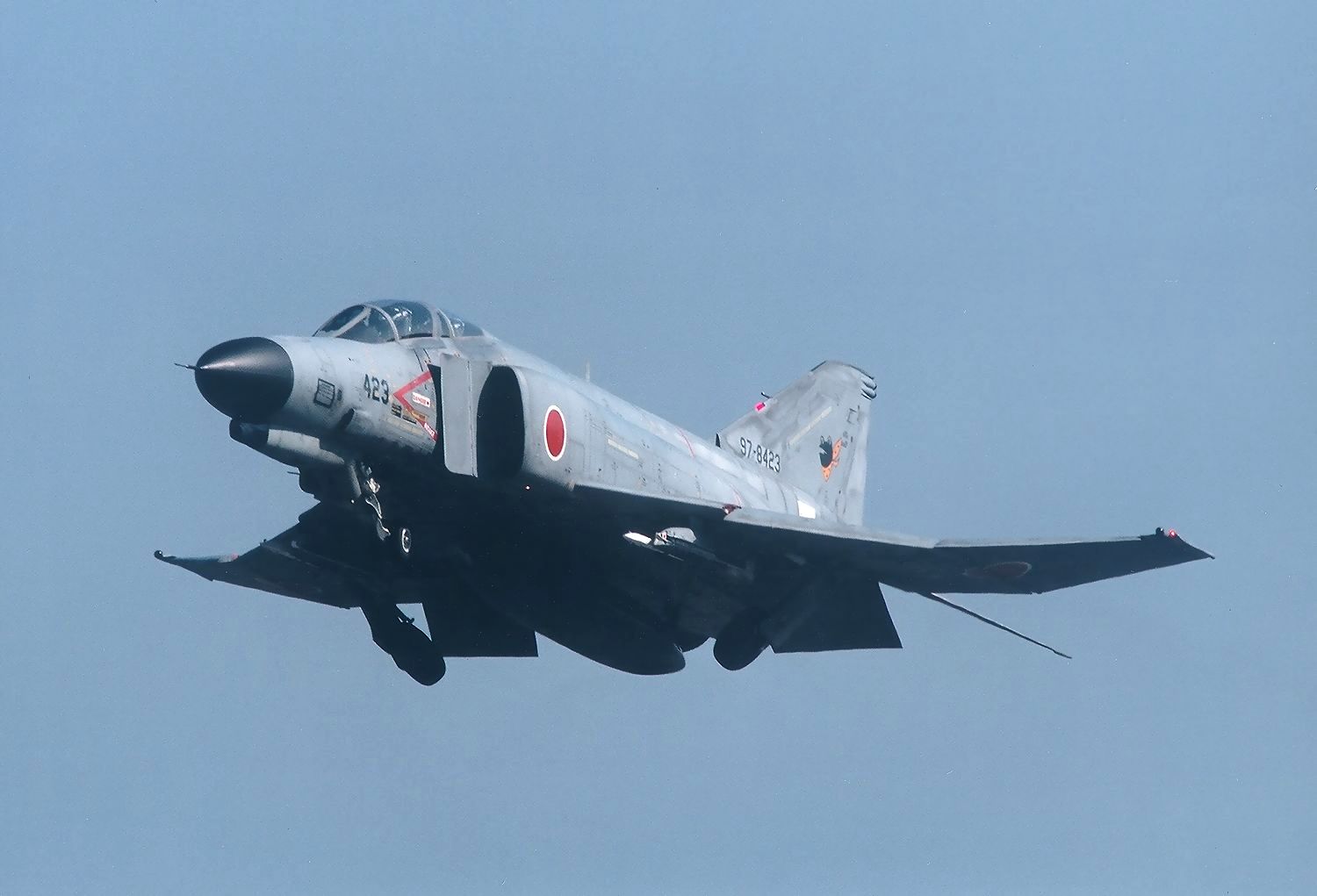 | これは、2004.02.186に新田原基地で撮影した、機関砲の射撃訓練に使用される標的曳航装置(AGTS)を装着して離陸する301SQ-F4EJ改 423号機です。 |