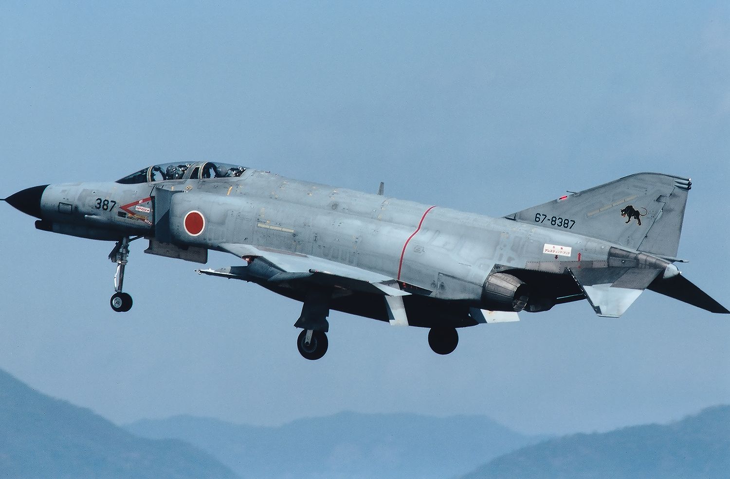 これは、2004.03.04に新田原基地の眺鷲台公園で撮影した、三沢基地所属の8SQ-F4EJ改 387号機のRW28の着陸です。