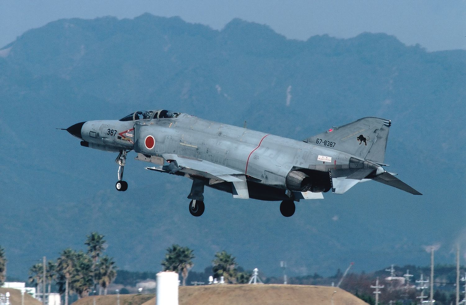 これは、2004.03.04に新田原基地の眺鷲台公園で撮影した、三沢基地所属の8SQ-F4EJ改 387号機のRW28離陸です。