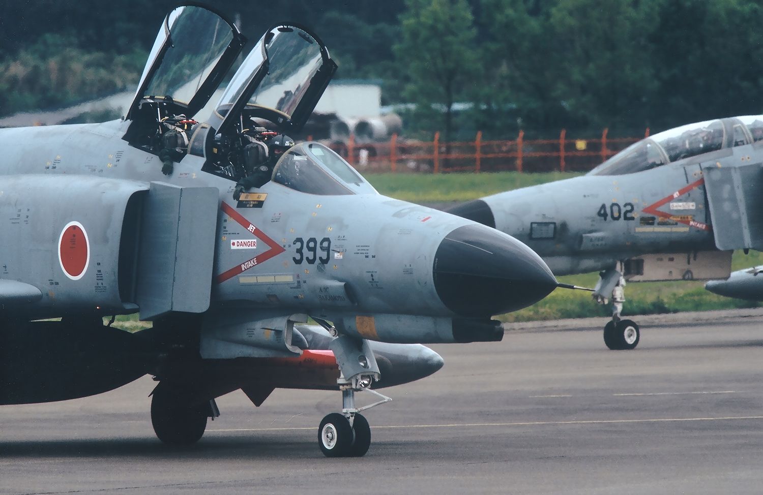 これは、2003.04.22に新田原基地で撮影した、対艦ミサイルを装着した301SQのF4EJ改の離陸です。