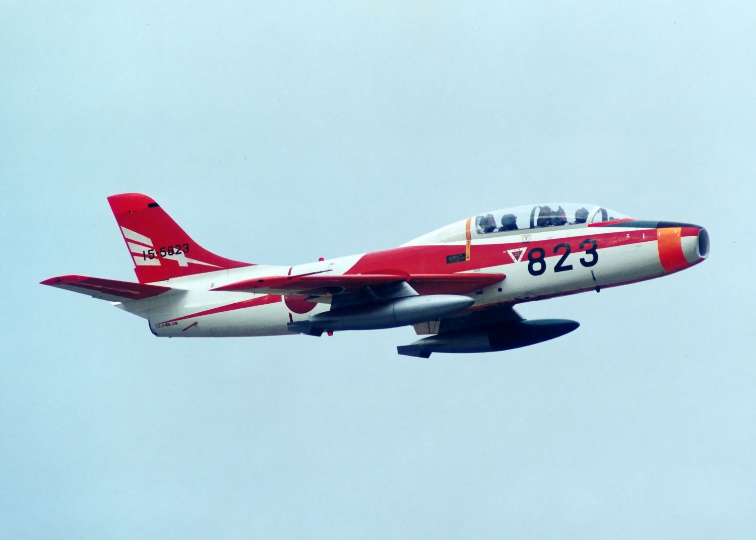 日本の富士重工業が開発した亜音速のT1ジェット練習機です。T1練習機は、航空自衛隊レシプロ機による初等訓練を終えたパイロットがつづいて訓練するための中等練習機として用いられました。