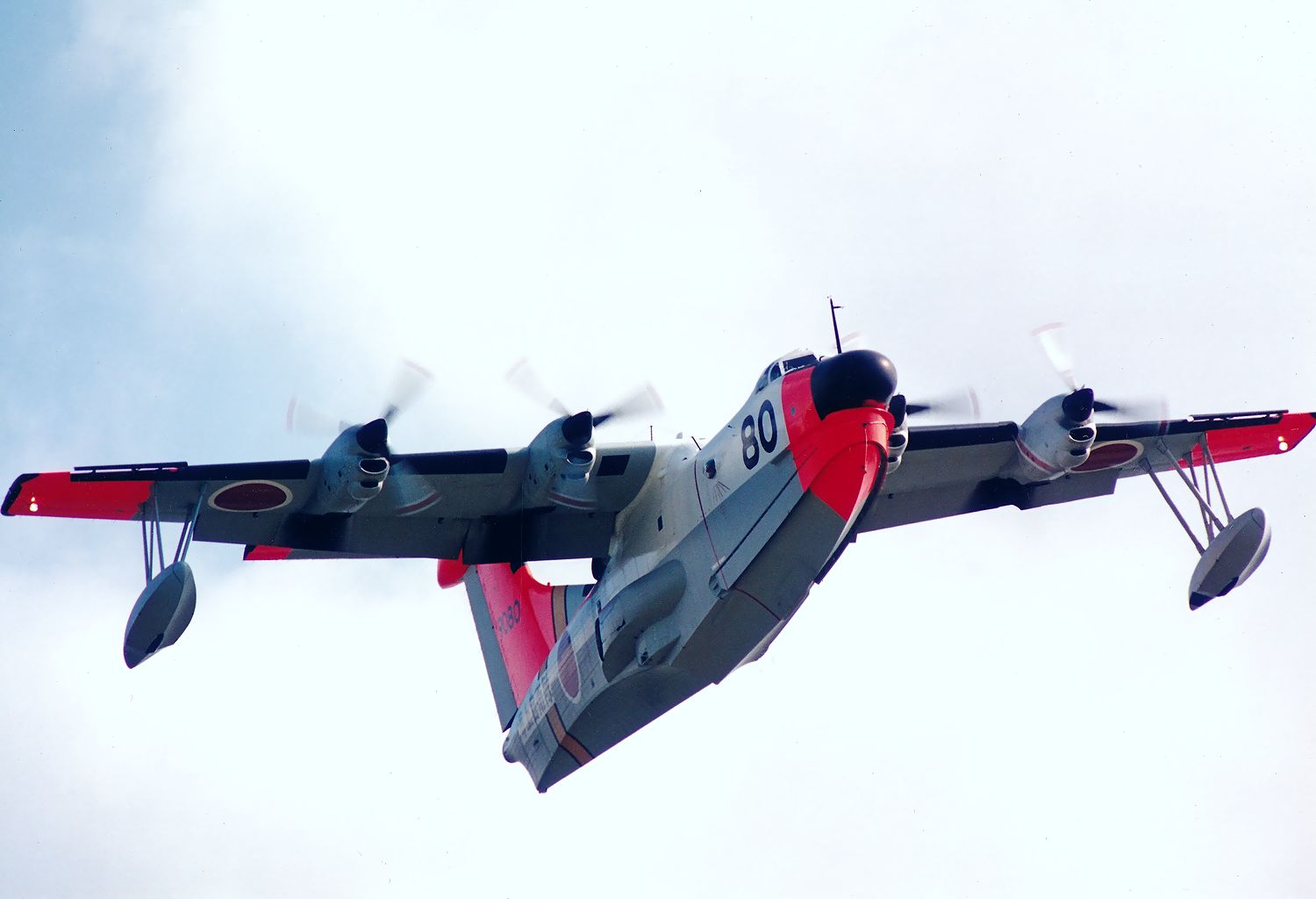 目の前で「ふわっ!。」と短距離離陸しました(@@)。 「さすが、救難飛行艇!!。」と感心しました(^^)。