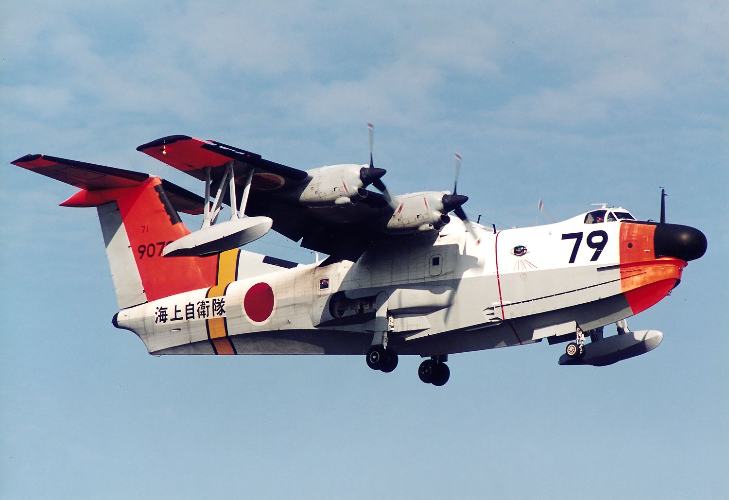 これは、1985年12月1日(日)に、新田原基地航空祭で撮影した海上自衛隊岩国基地の第31航空群第71航空隊所属のUS1の離陸です。