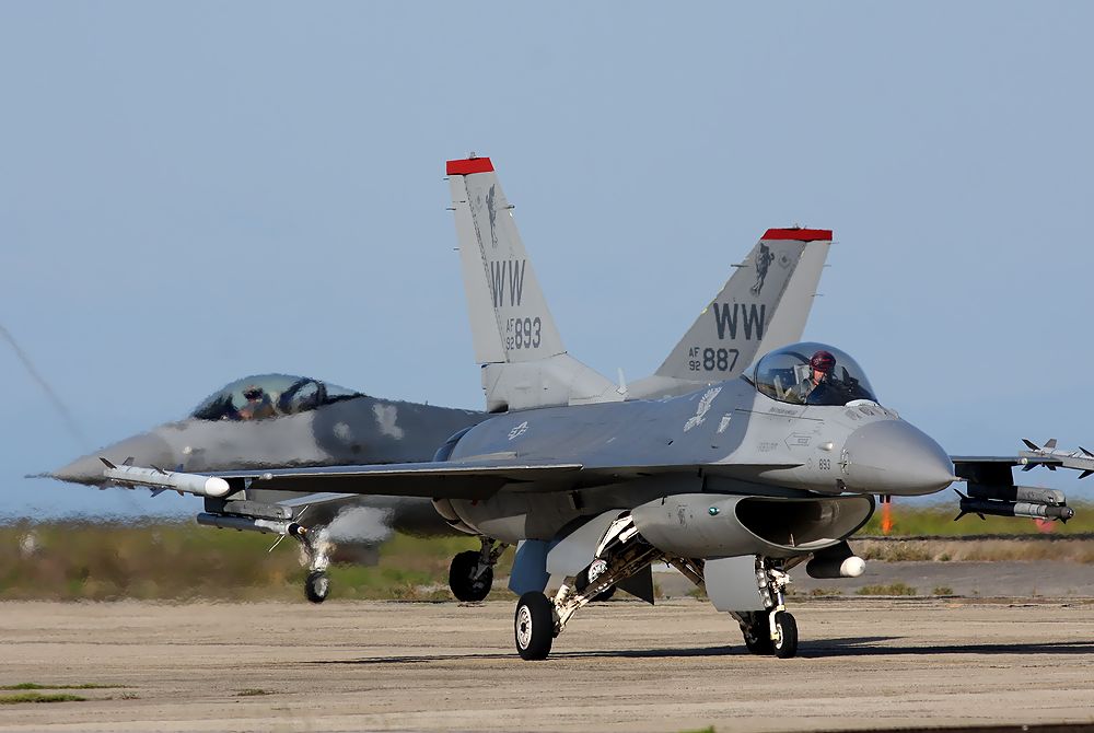 これは、2017.10.4(水)に築城基地で撮影した、米空軍 13FSのF16C/Dの離陸です。 |