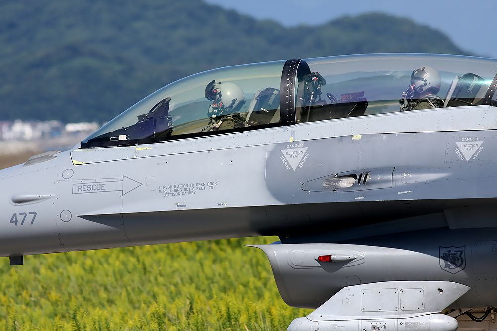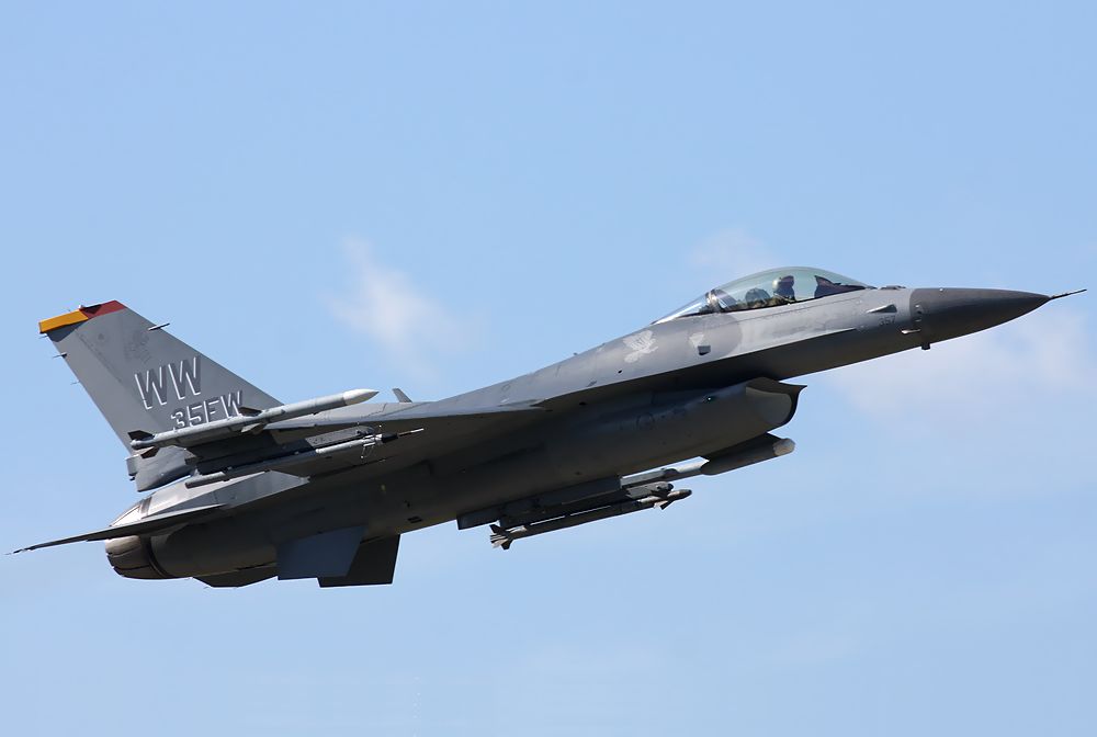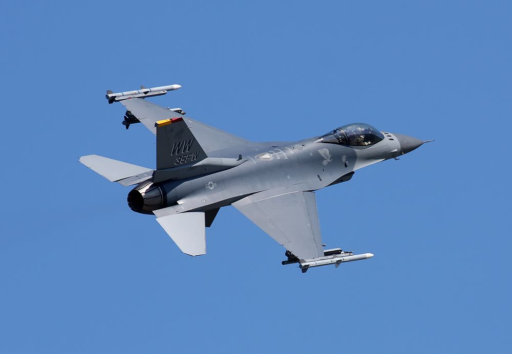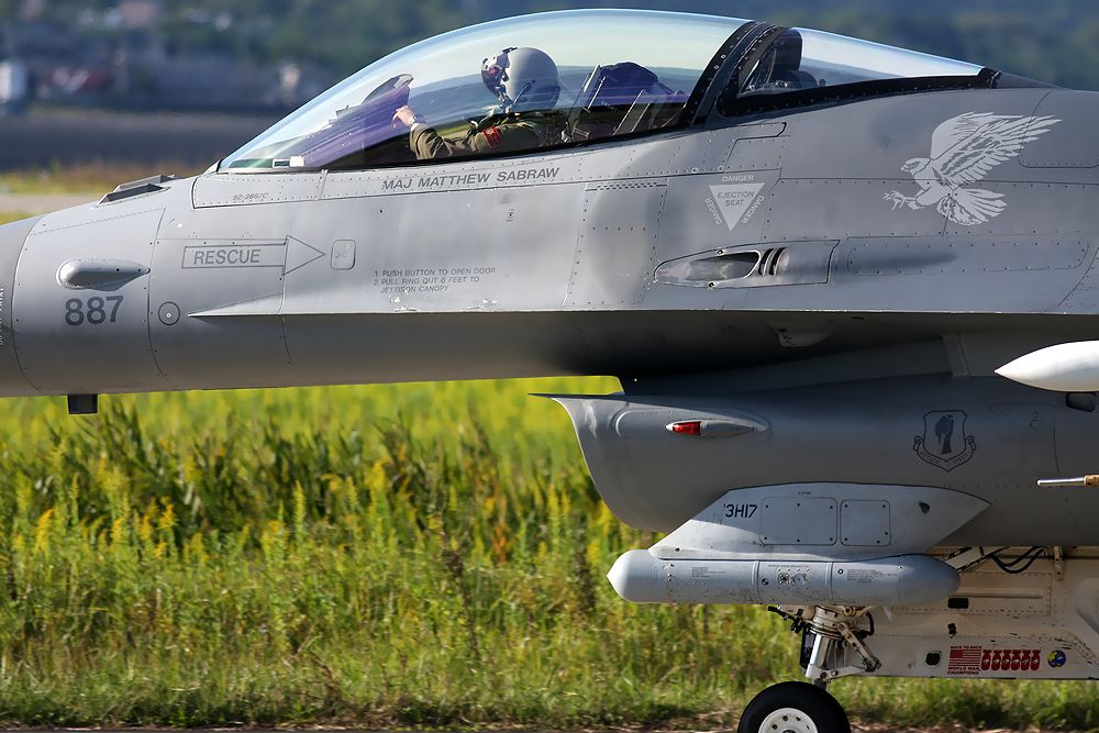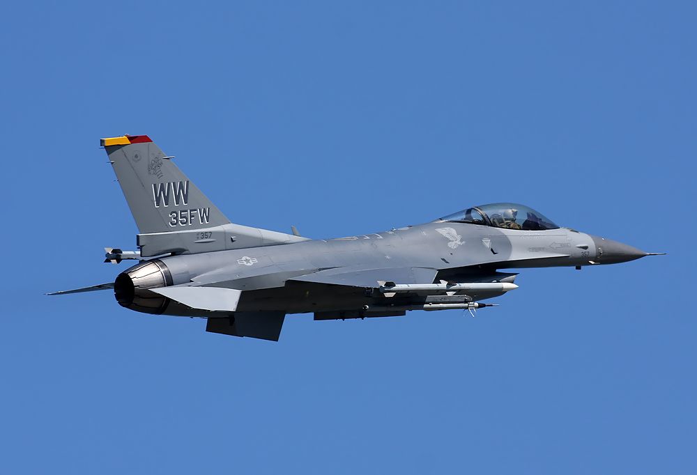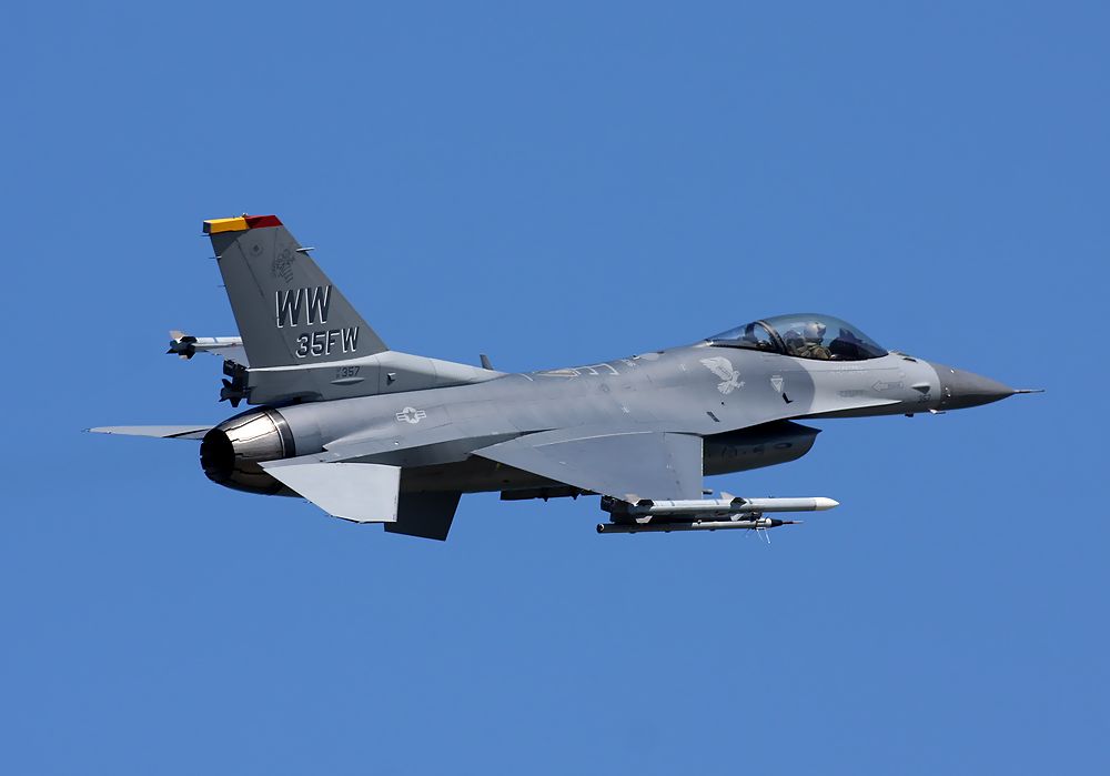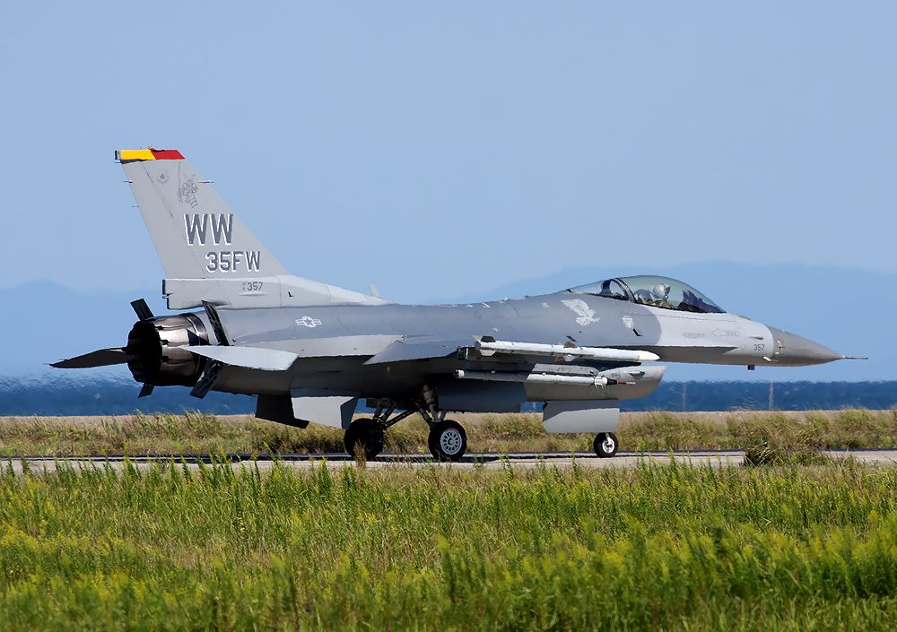 これは、訓練を終えてRW07からローアプローチしてきた米空軍第35戦闘航空団のF16Dです。