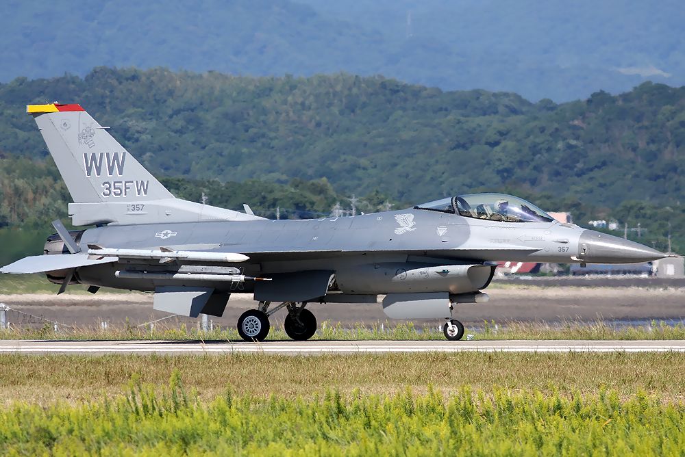 これは、訓練を終えて着陸してきた米空軍第35戦闘航空団のレター(35FW)を付けたF16CのRW25エンドのタキシーです。