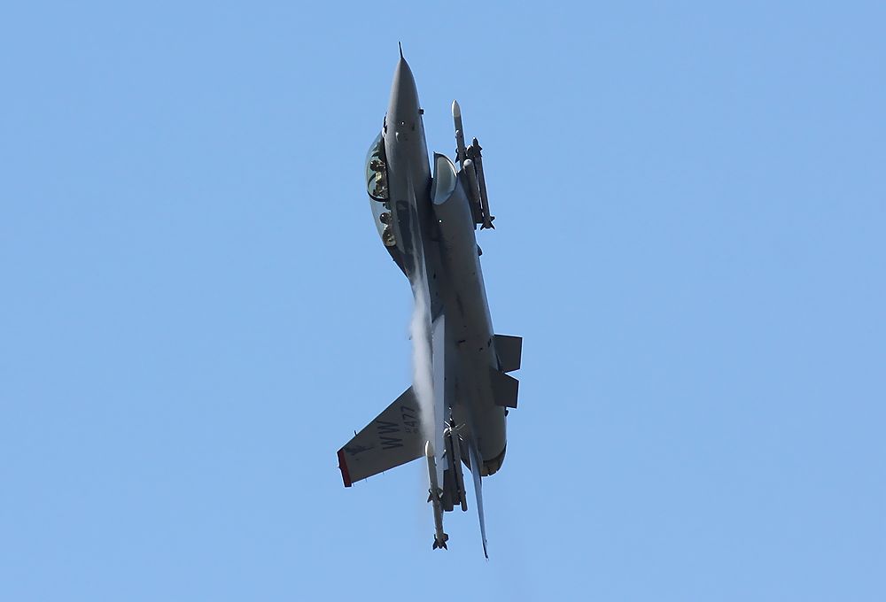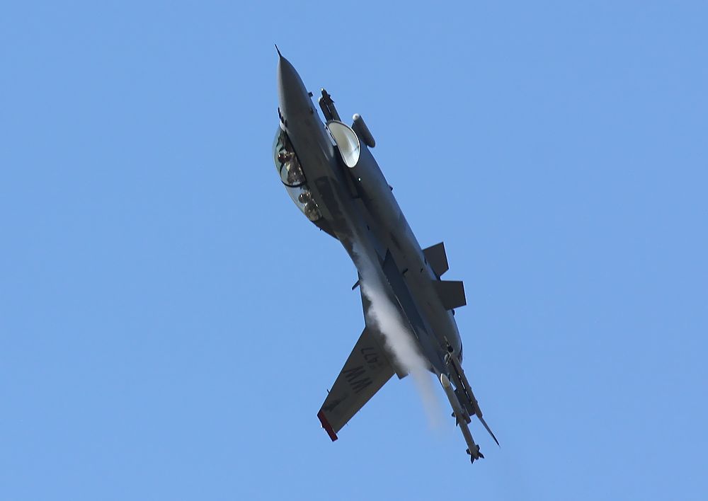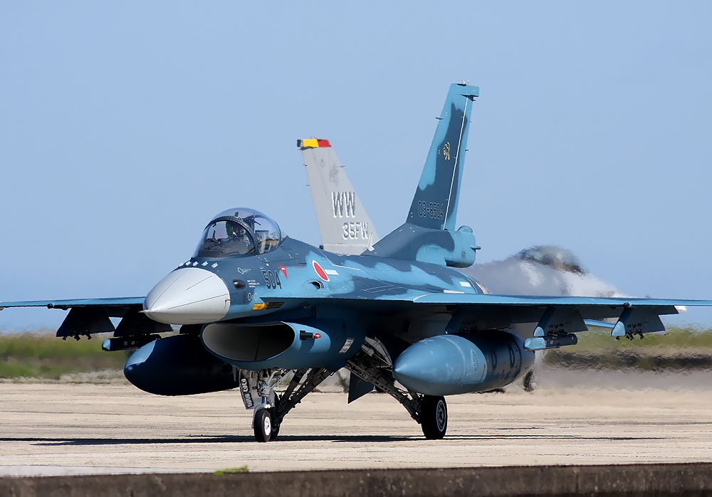 これは、米空軍第35戦闘航空団のレター(35FW)を付けたF16Cも、空自のF2に負けじとRW25エンドあたりで派手なライトターンして、私たち大勢の観客を喜ばせてくれました(^^)。