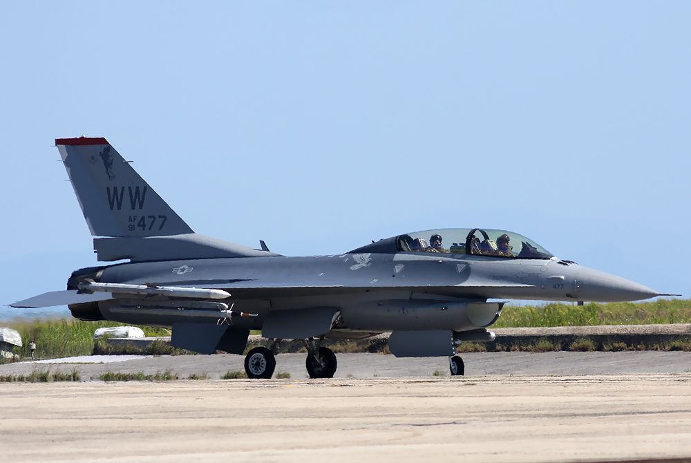 これは、訓練を終えて着陸してきた米空軍 F16DのRW25エンドのタキシーです。