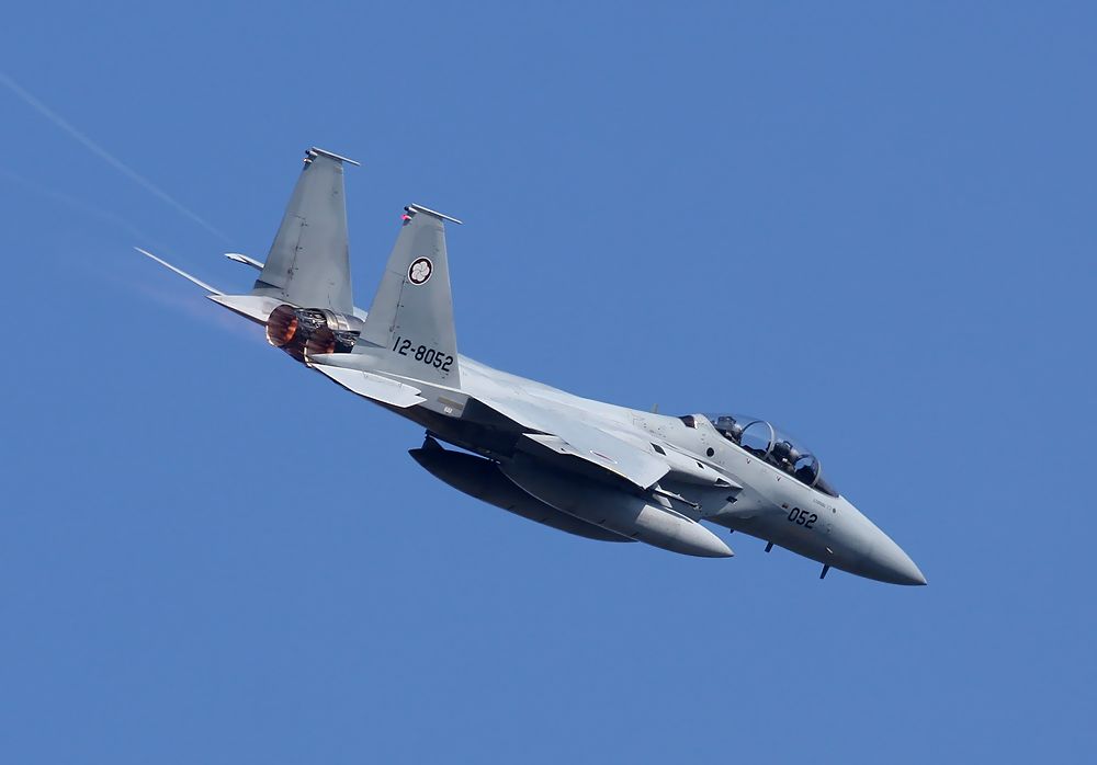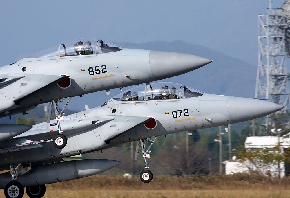 | これは2017年11月21日(火)に新田原基地で撮影した、23SQのF15J/DJによる2017年新田原基地航空祭でのデモフライトのための事前練習です。(No.4) |