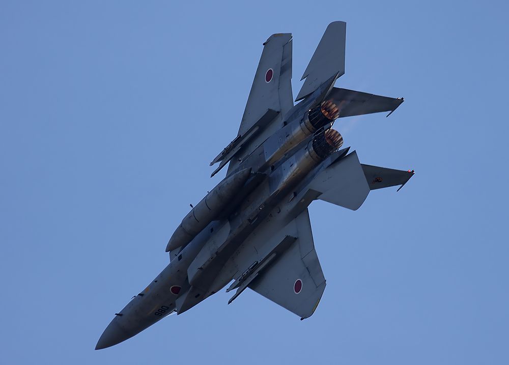 | これは2017年11月21日(火)に新田原基地で撮影した、305SQのF15J/DJによる2017年新田原基地航空祭でのデモフライトのための事前練習です。(No.4) |