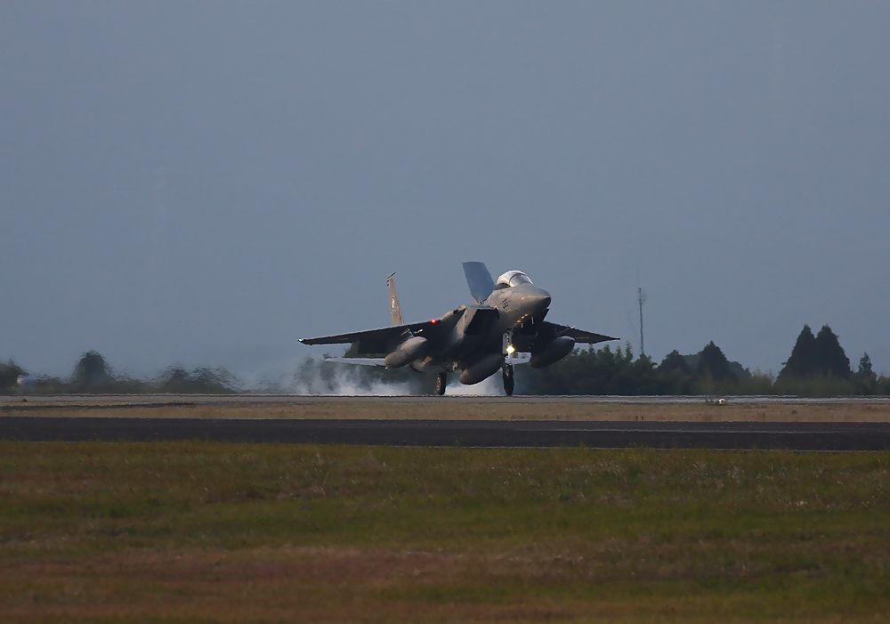 これは2017年11月21日(火)に、新田原基地で撮影した「新田原基地開設 60周年記念塗装」を施した 305SQ-F15Jの着陸です。