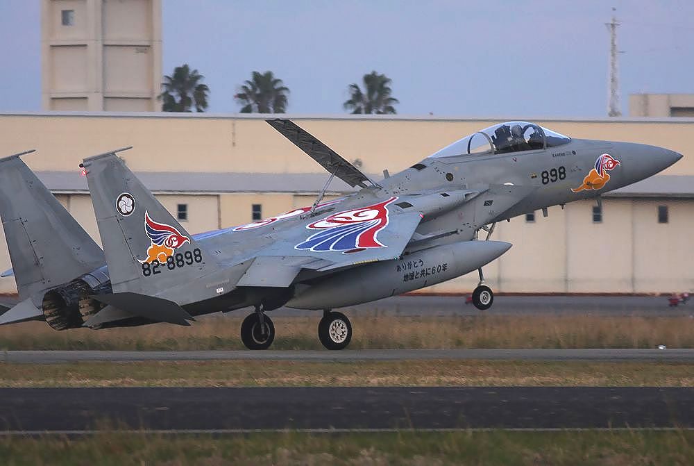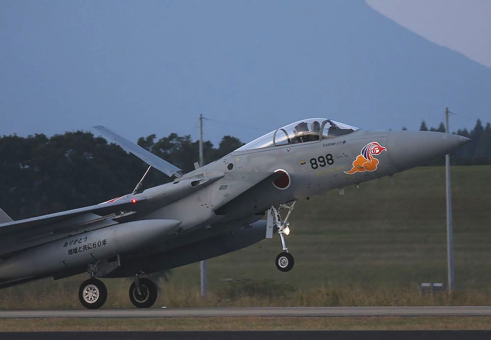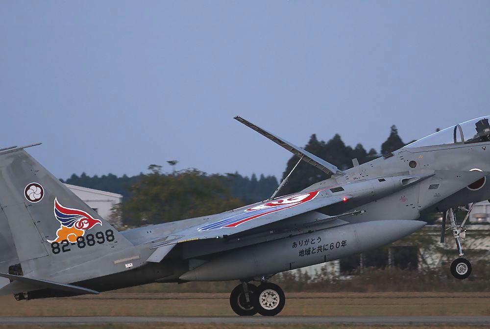 | これは2017年11月21日(火)に、新田原基地で撮影した「新田原基地開設 60周年記念塗装」を施した 305SQ-F15Jの離陸です。 |