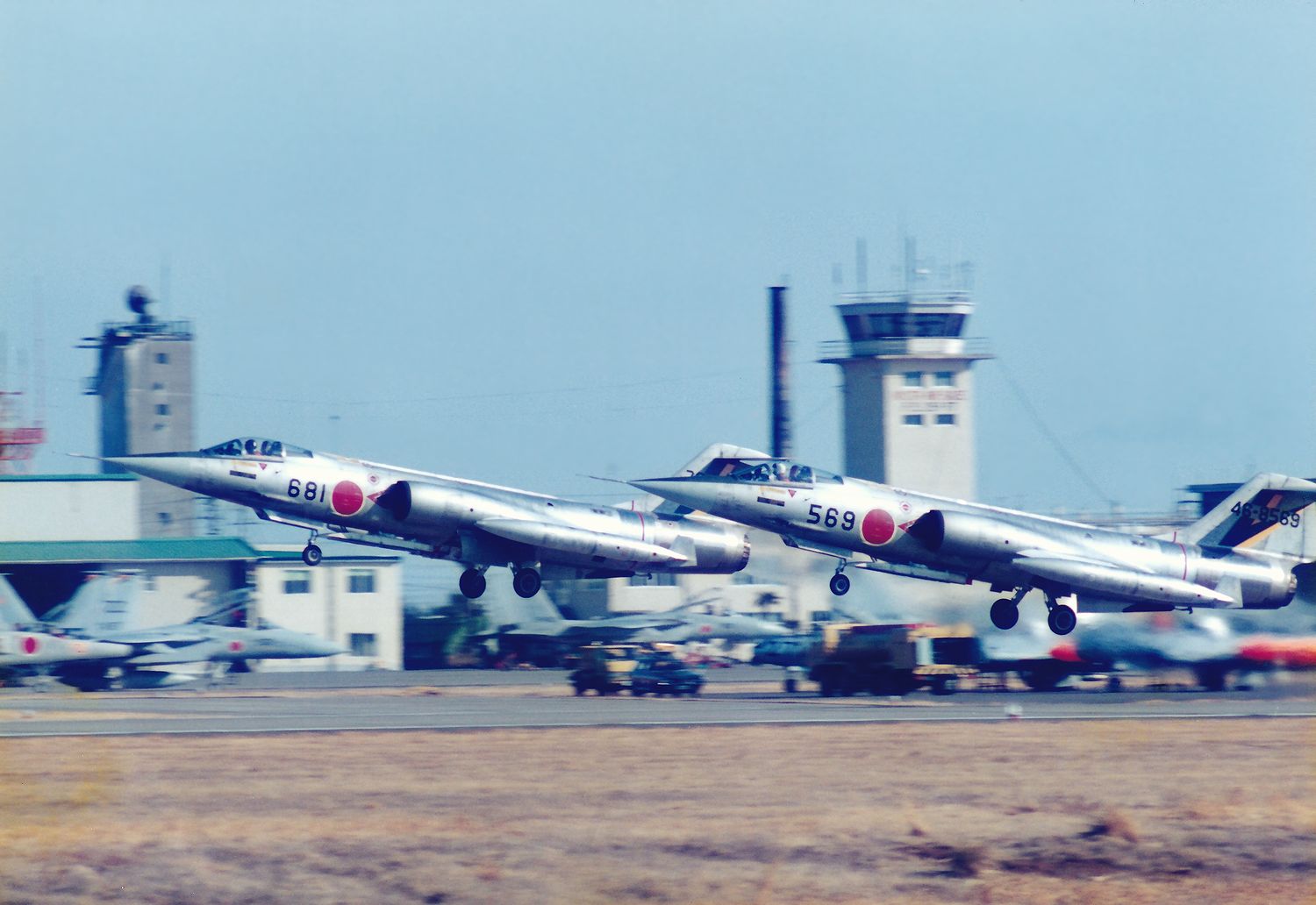 これは1984年に新田原基地で撮影した、「ニュータ・タワー」が背景に写り込んだ写真です。