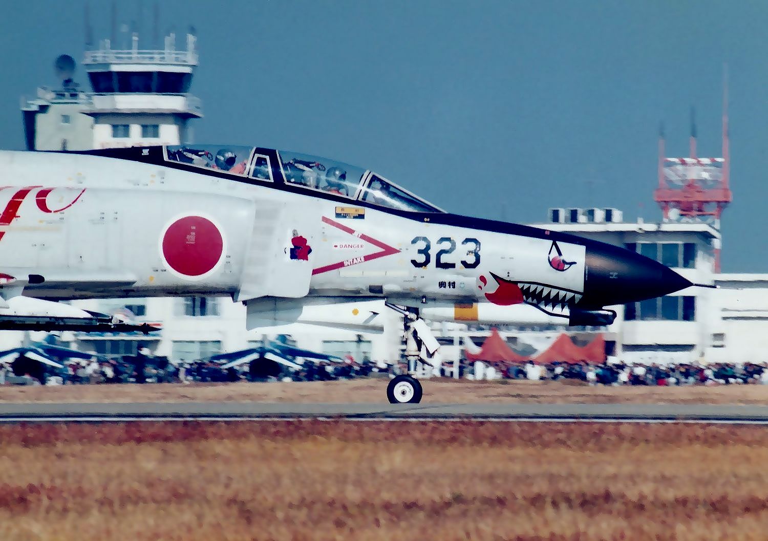 ・(3枚目写真)2004年11月に、那覇基地から302SQのF4EJが飛来してDACTを行っていました。そのうち1機は、戦技競技会参加用のロービジのシャークを描いていました。