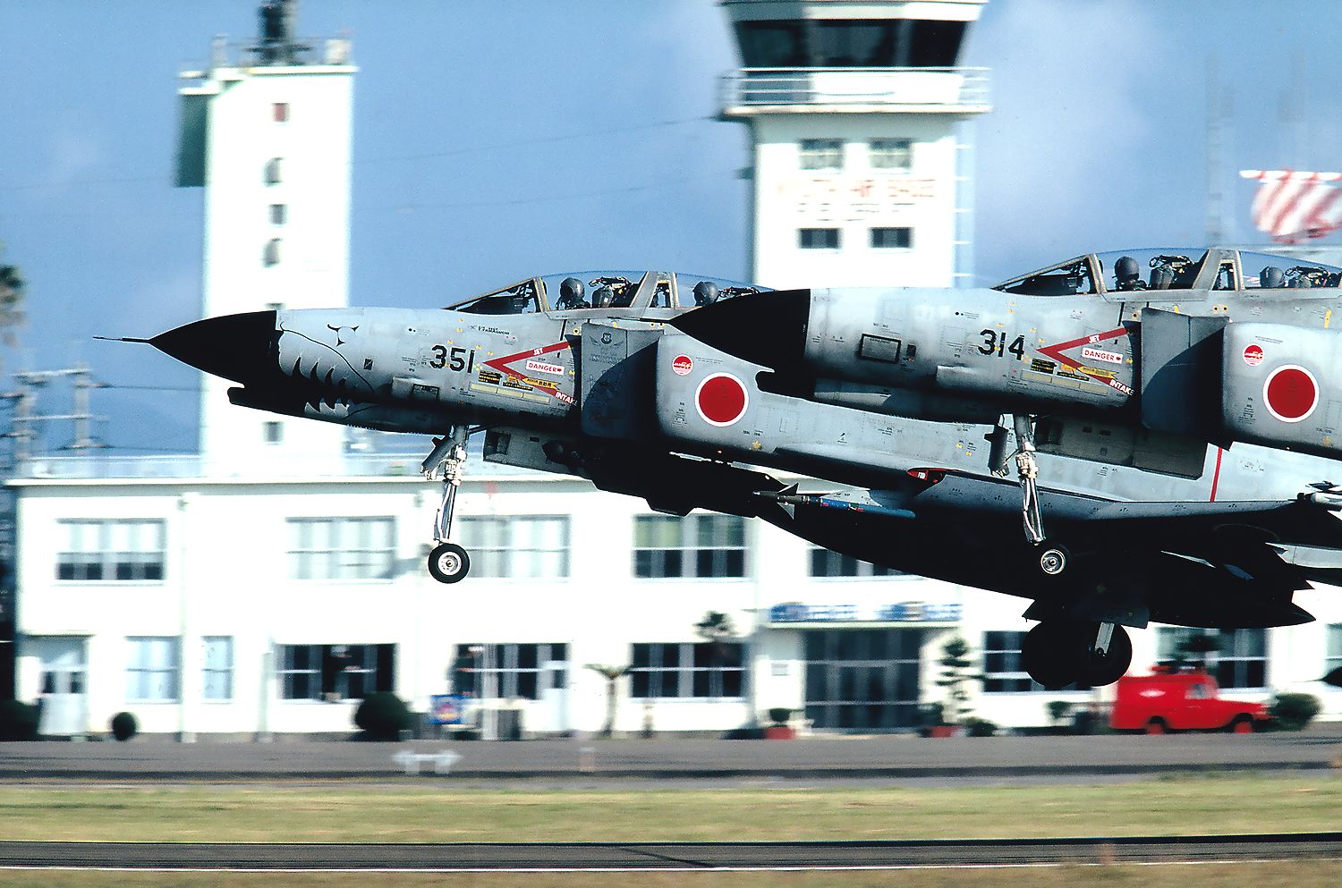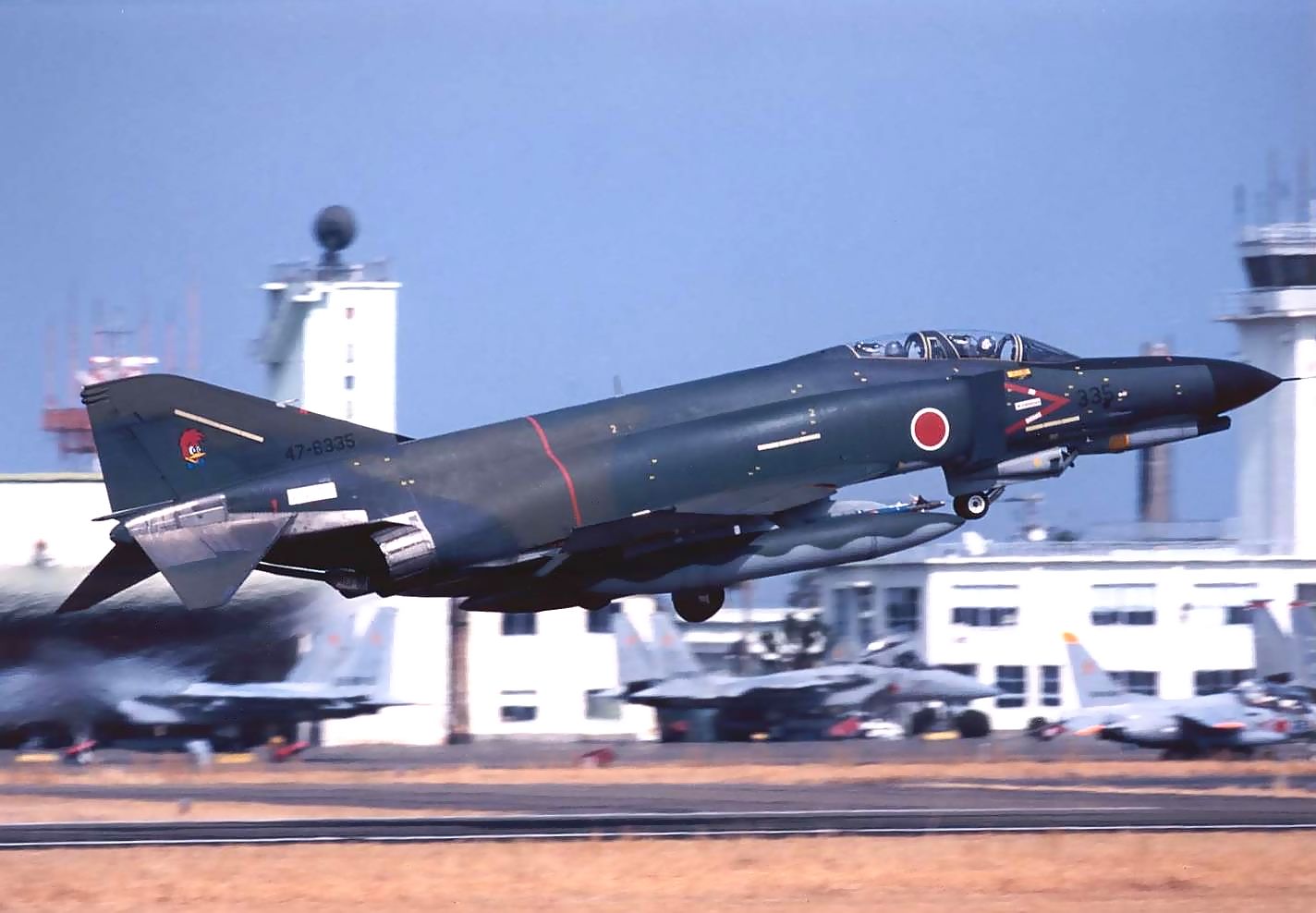 これは2003年−2004年に新田原基地で撮影した、背景に「ニュータ・タワー」が写り込んだ写真です。