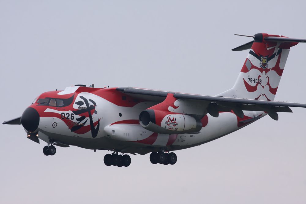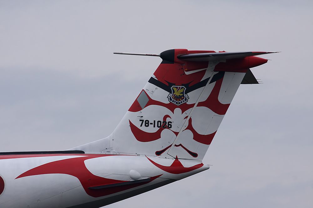 | 入間基地の第2輸送航空隊のC-1記念塗装機(入間基地創設60周年記念塗装機 通称 歌舞伎)が、2018年11月13日(火)に新田原基地に飛来しました。 |