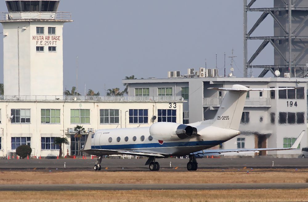 新田原基地の旧航空管制塔(通称:ニュータ・タワー)の南側(エプロン側)には、 大きな赤い文字で 「NYUTA