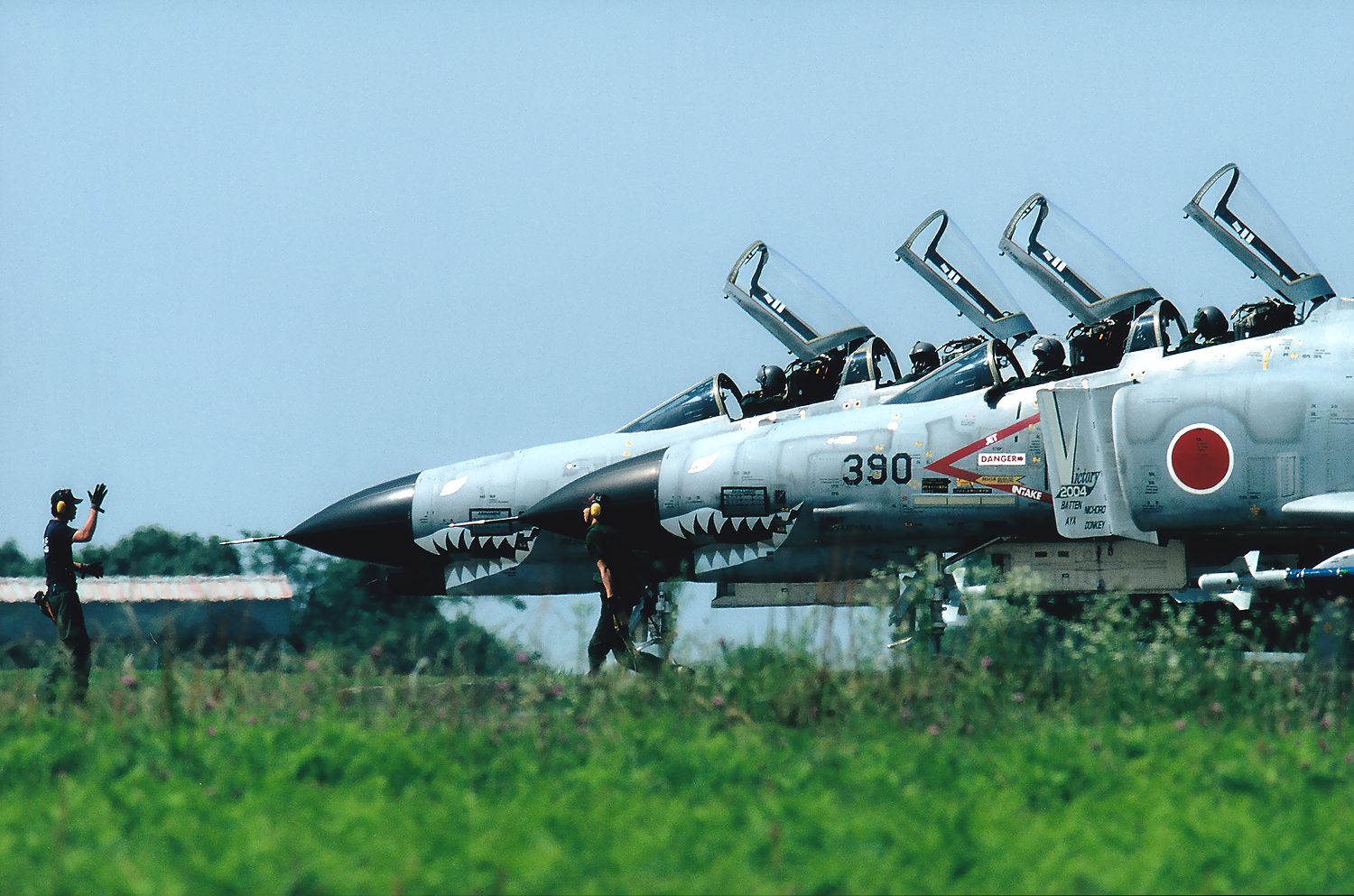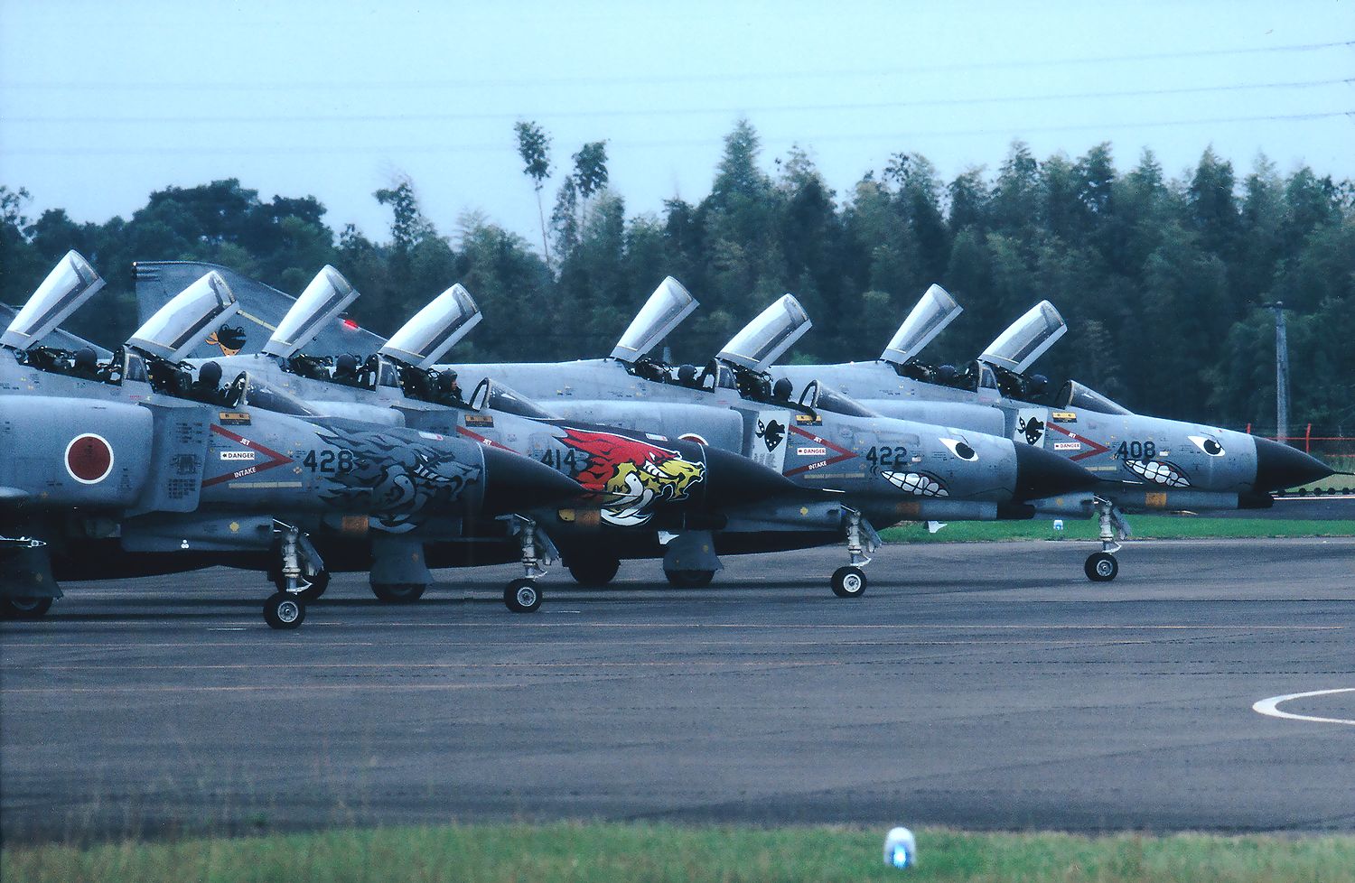 is taxiing from behind these F4s. |