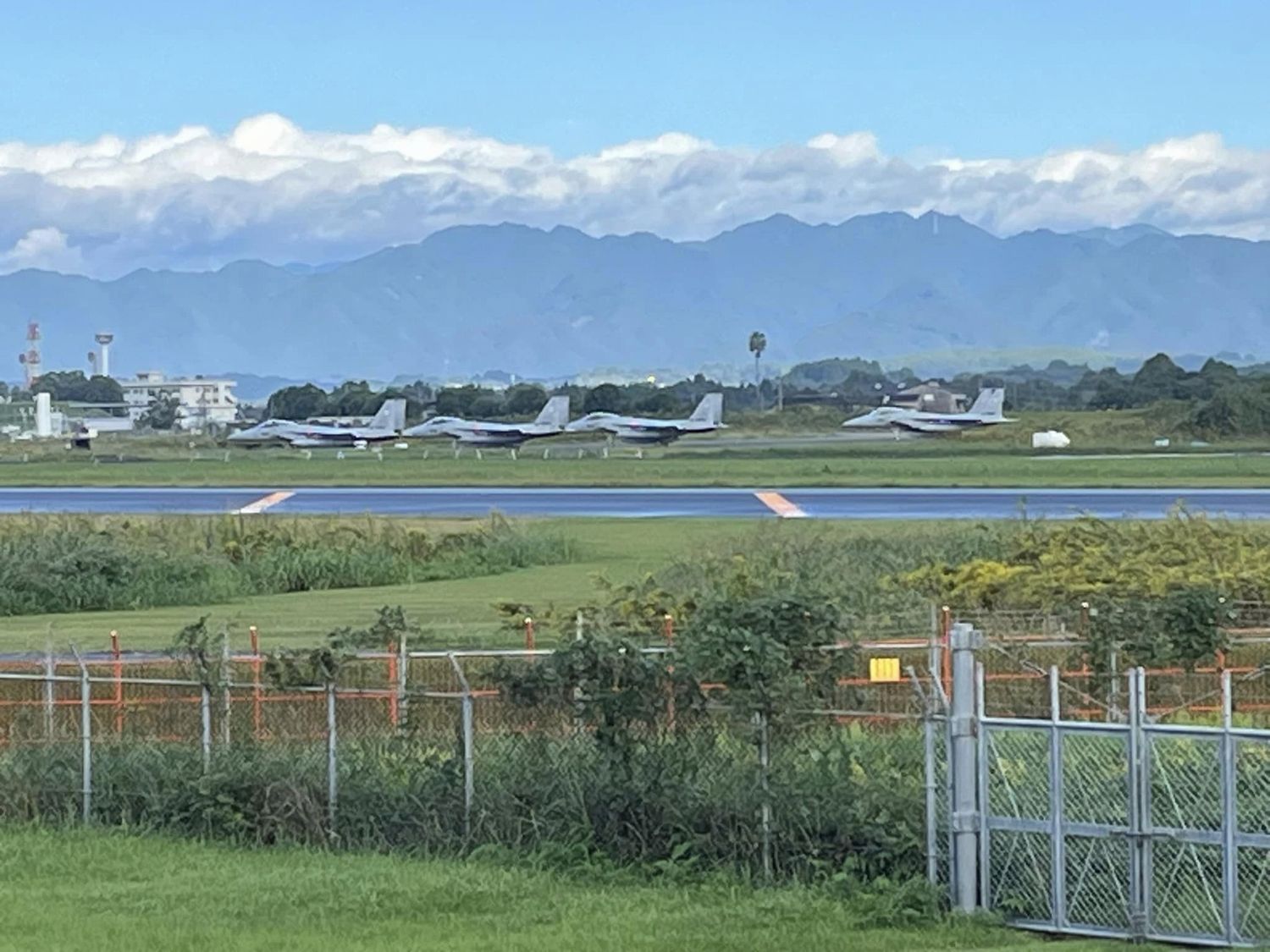 一昨日(10月22日)に新田原基地に飛来したというF22を展望台からスマホで撮りました。