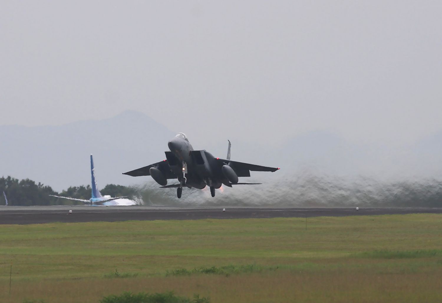 自衛隊とアメリカ軍による実動訓練『キーン・ソード25』が23日から始まり、熊本空港に新田原基地のF15Jが4機 2024年10月24日に初めて飛来しました。