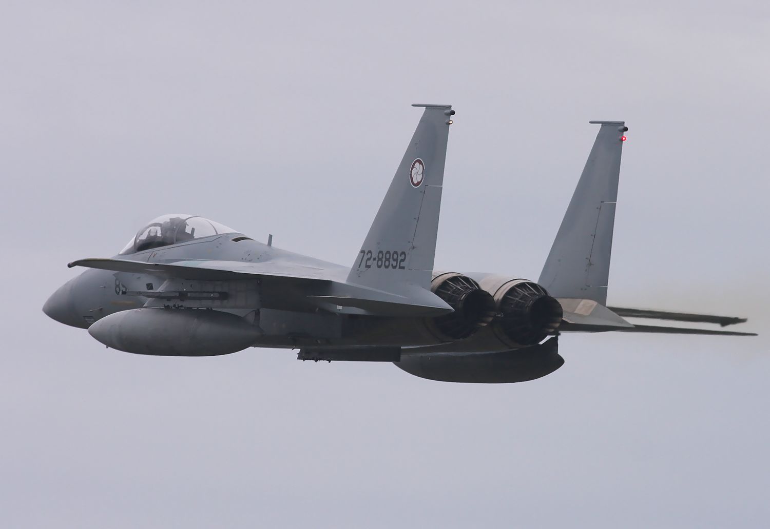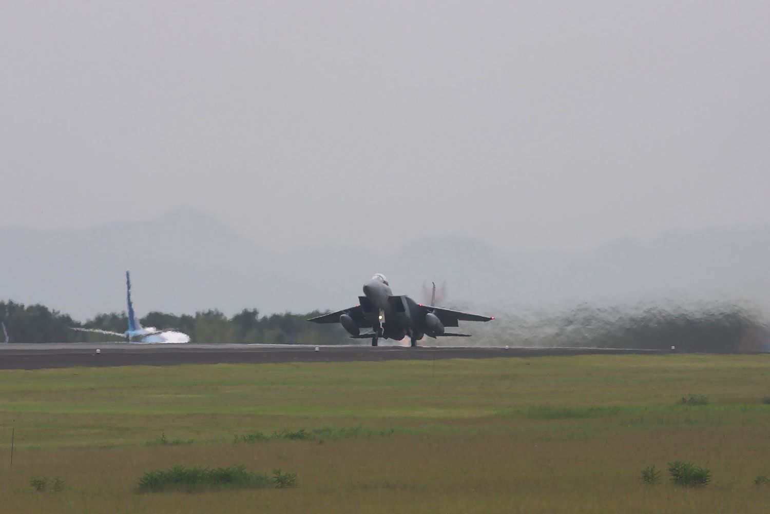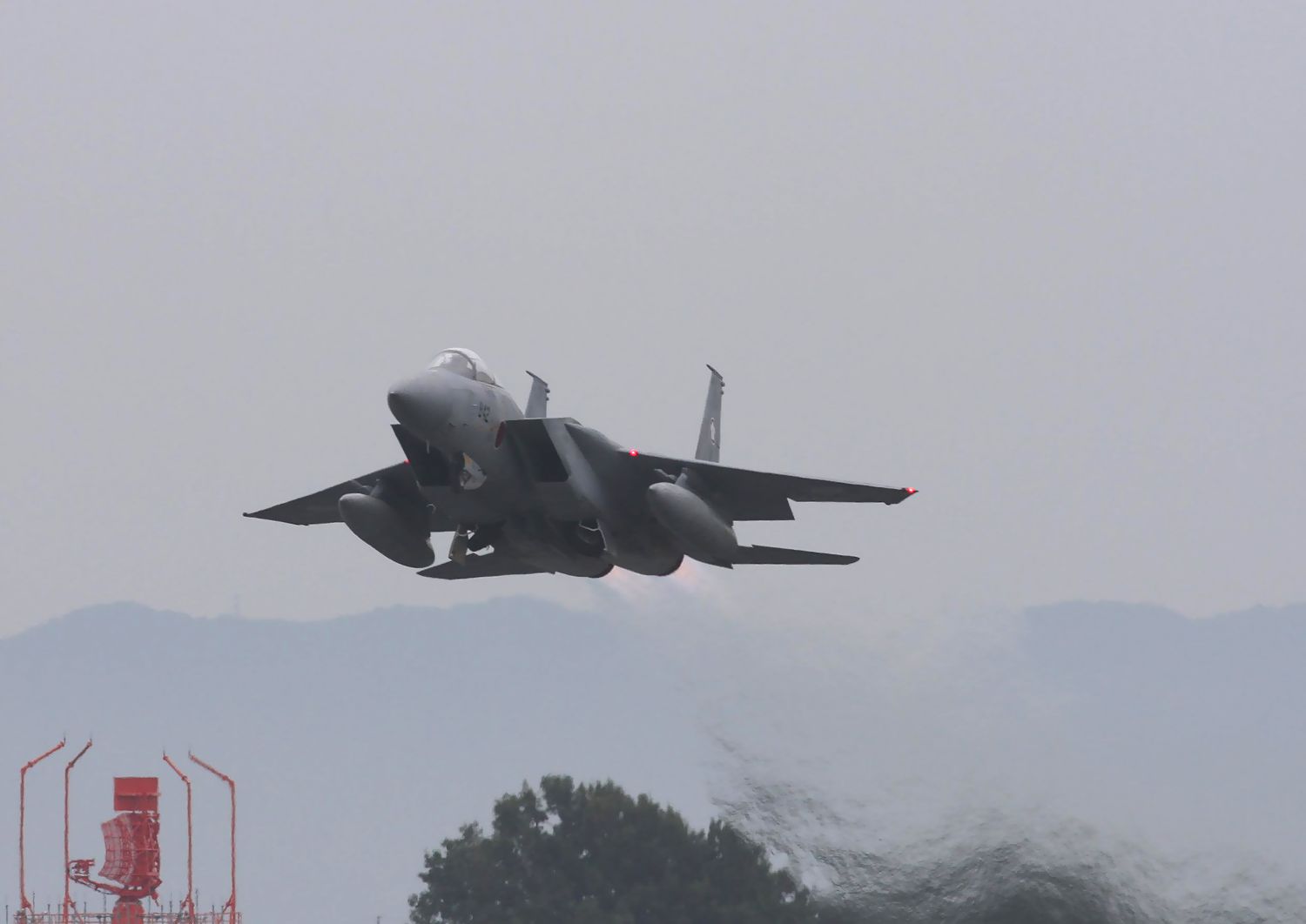 熊本空港RW07から、305SQ-F15J/DJがフルアフターバーナーで離陸しました。