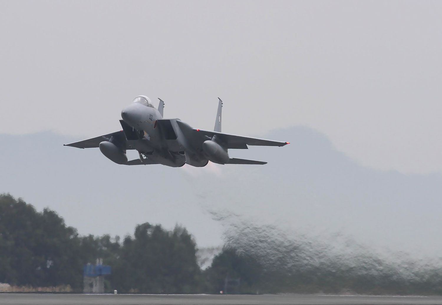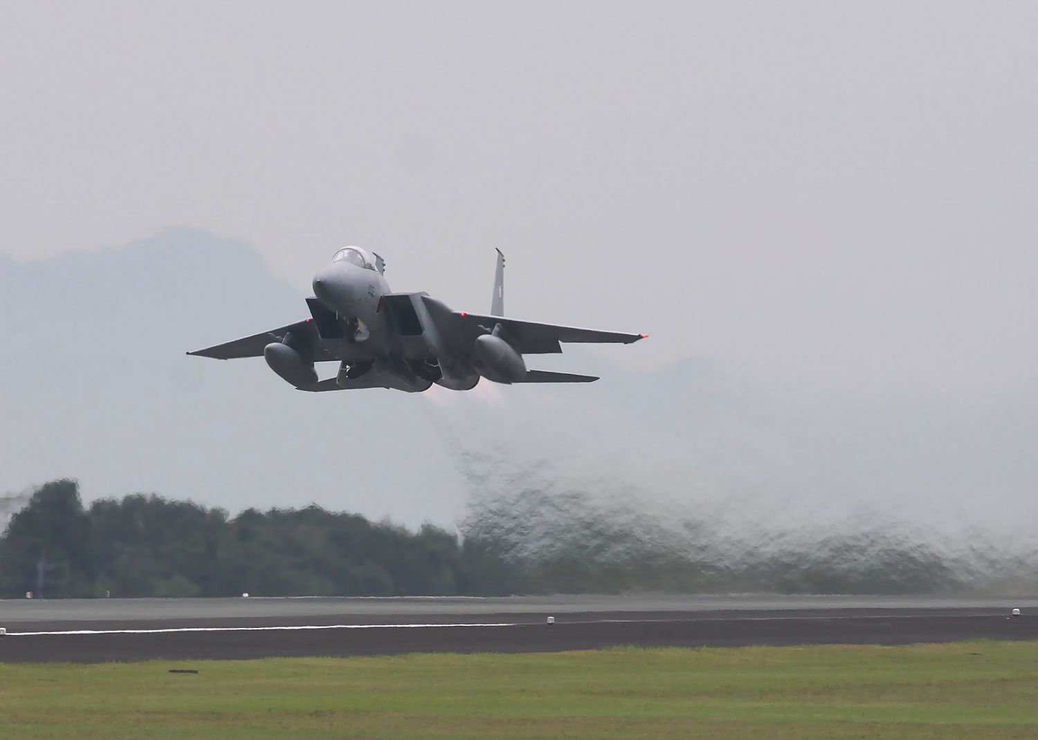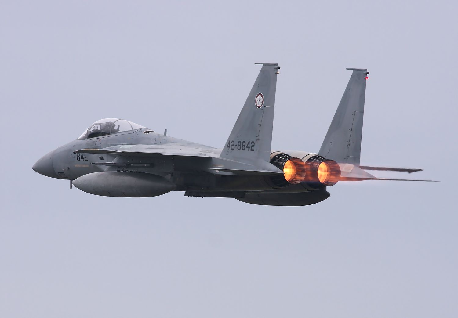 熊本空港RW07から、305SQ-F15J/DJがフルアフターバーナーで離陸しました。