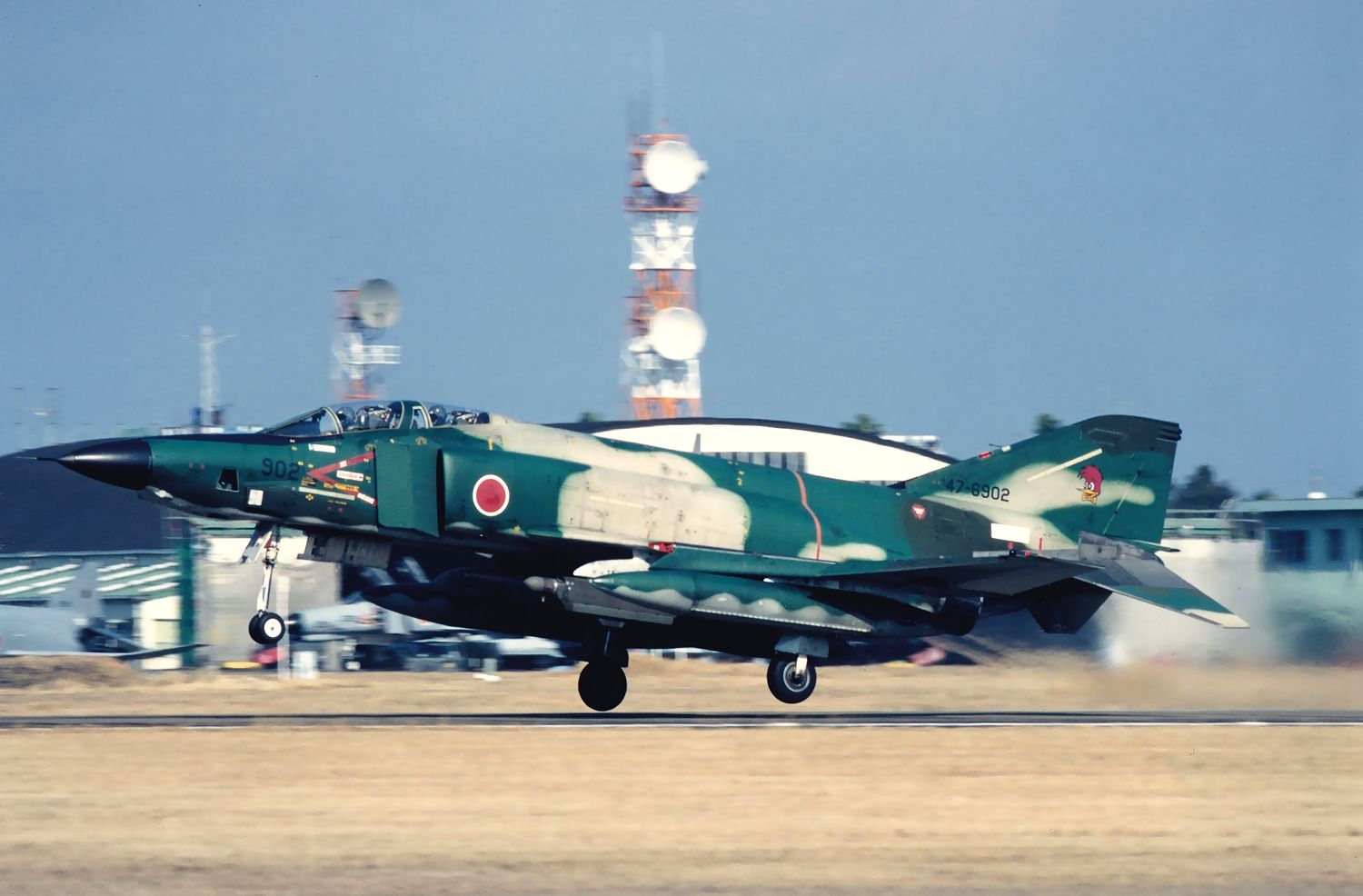 このEJ型の機体は、F4EJ改のガン射撃訓練のためにダーツターゲットを牽引していました。