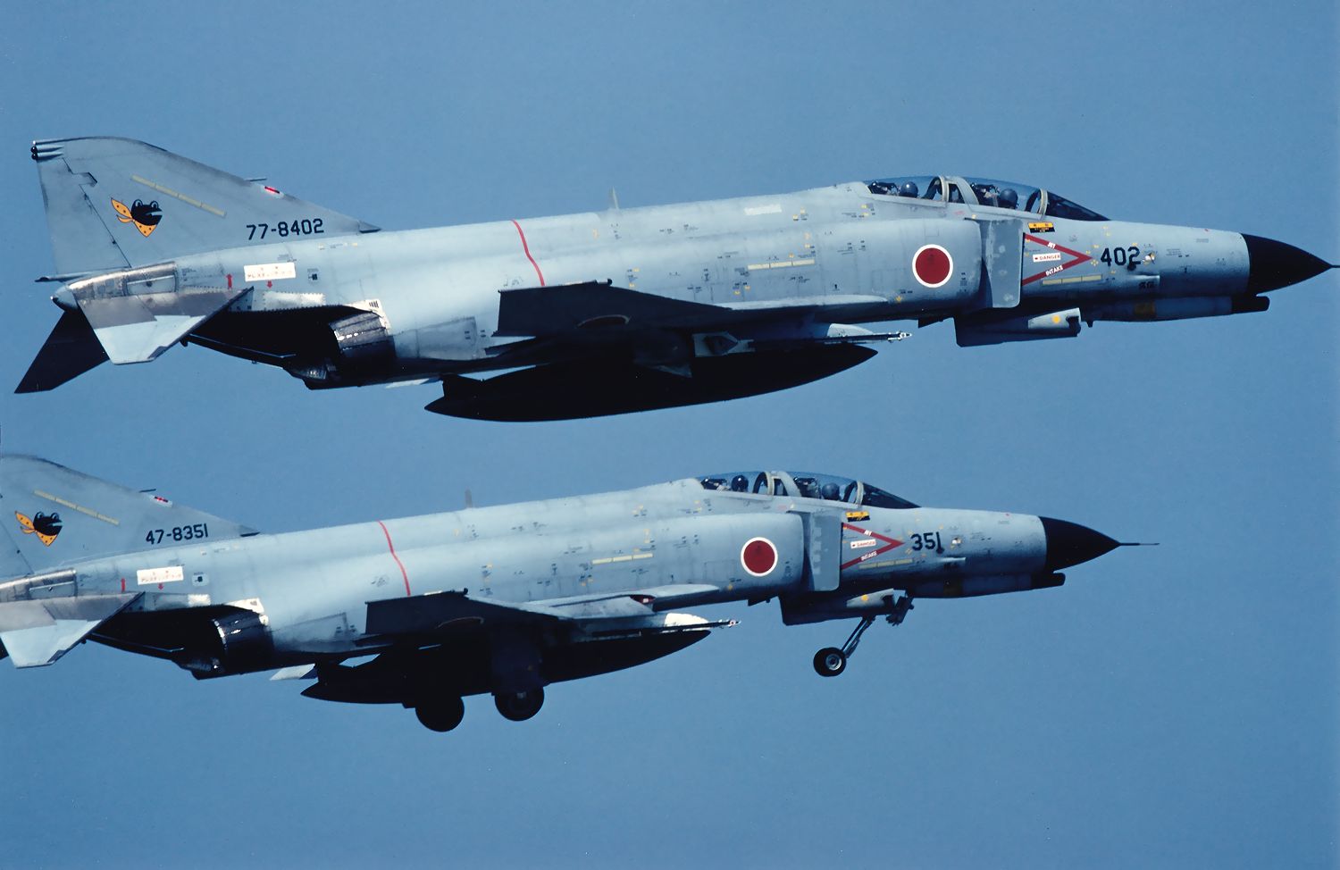 1998.04.20に新田原基地で撮影した、那覇基地から飛来した302SQのF4EJ改 322号機と352号機です。