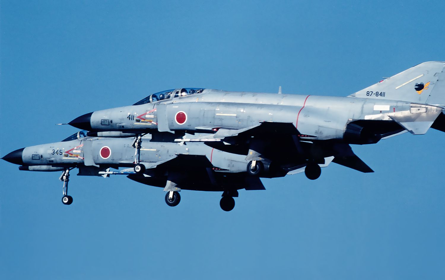 1998.04.20に新田原基地で撮影した、那覇基地から飛来した302SQのF4EJ改 322号機と352号機のランディングです。