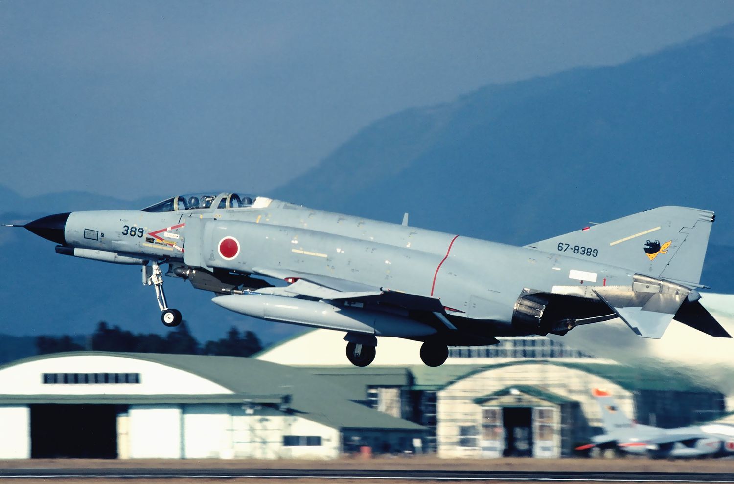 | これは、1998.07.06に新田原基地で撮影した、ミサイル標的を胴体下に装着して離陸に向かうF4EJ 326号機です。 |