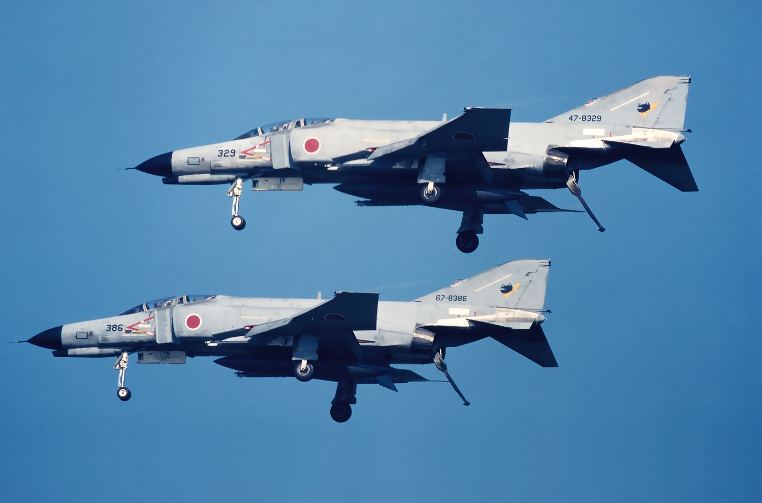 このころ、航空総隊の総合演習が開催されており、2機のRF4EJが新田原基地に飛来していました。 |