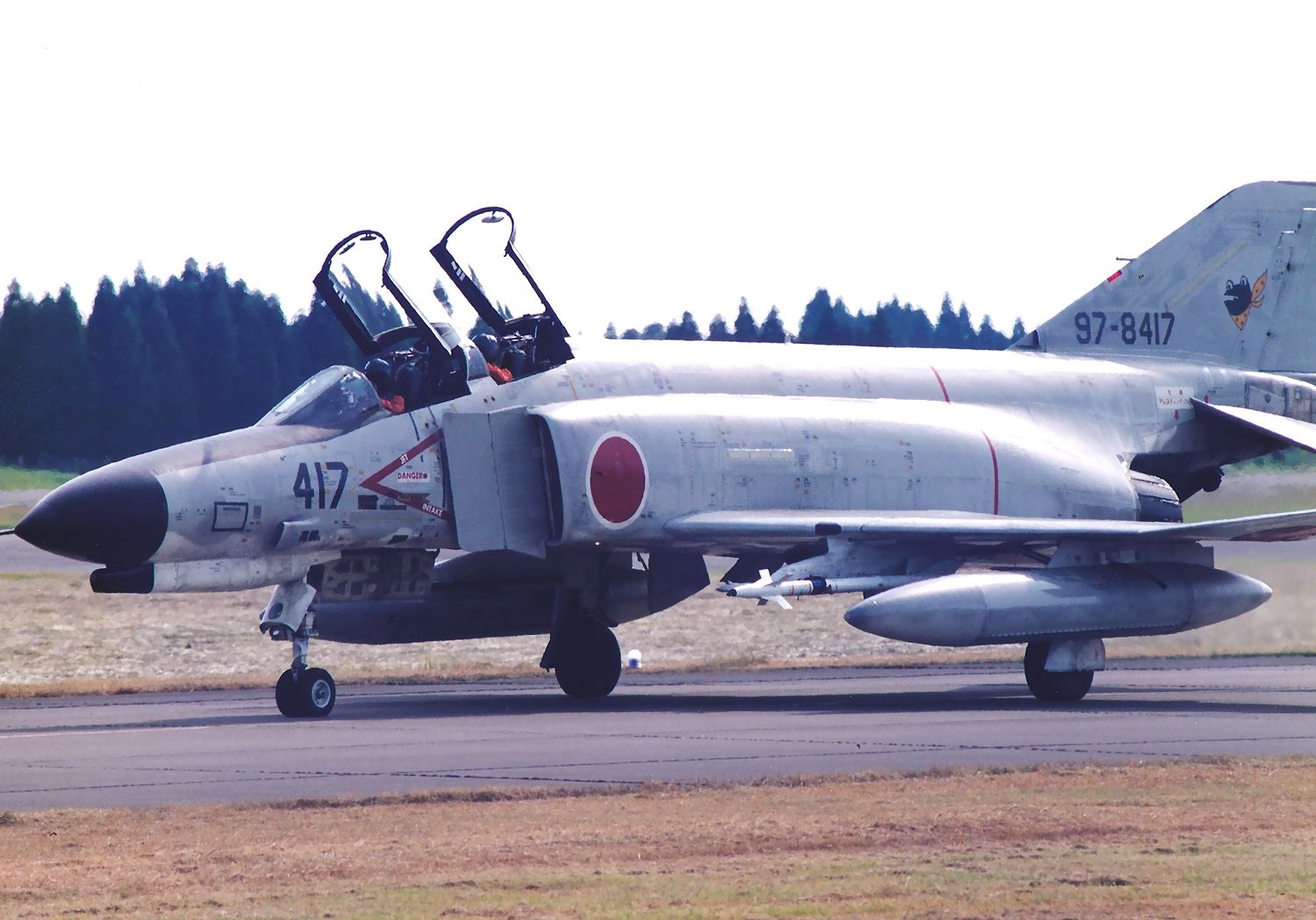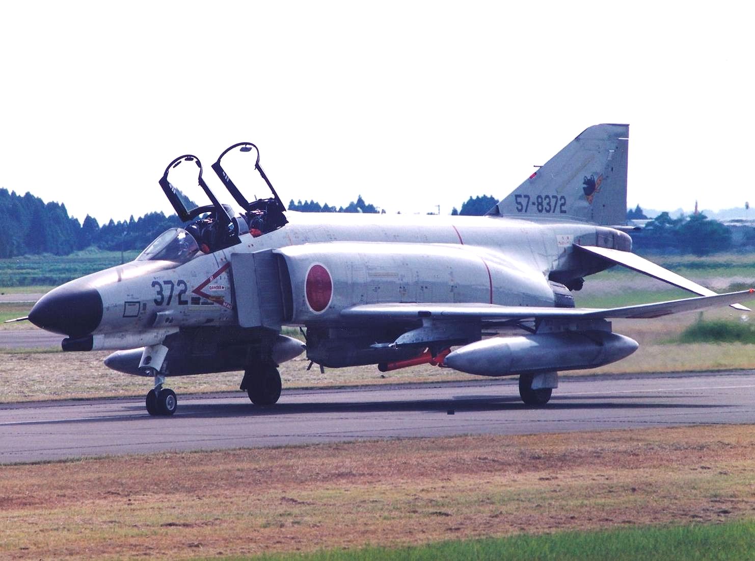 ミサイル標的を装着したF4EJ-372号機の後を追って、白色のサイドワインダー(実弾)を装着したF4EJ 2機がタキシーしてきました。