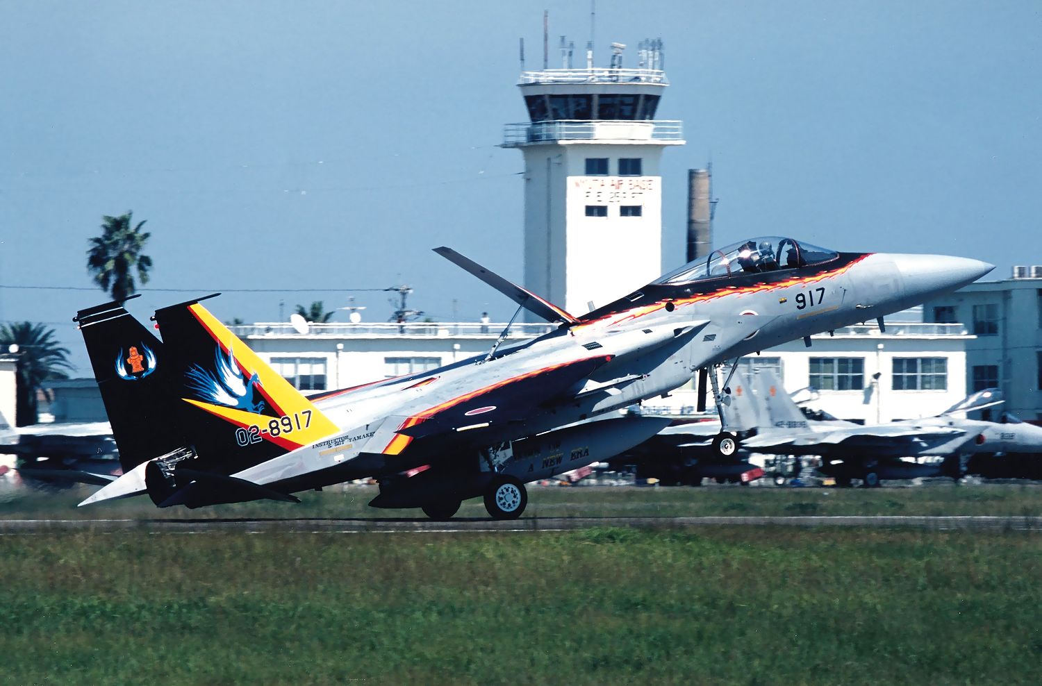 これらのF15DJは、2000年7月末に開催予定だった航空総隊戦技競技会F15部門の参加塗装を機体に施しています。