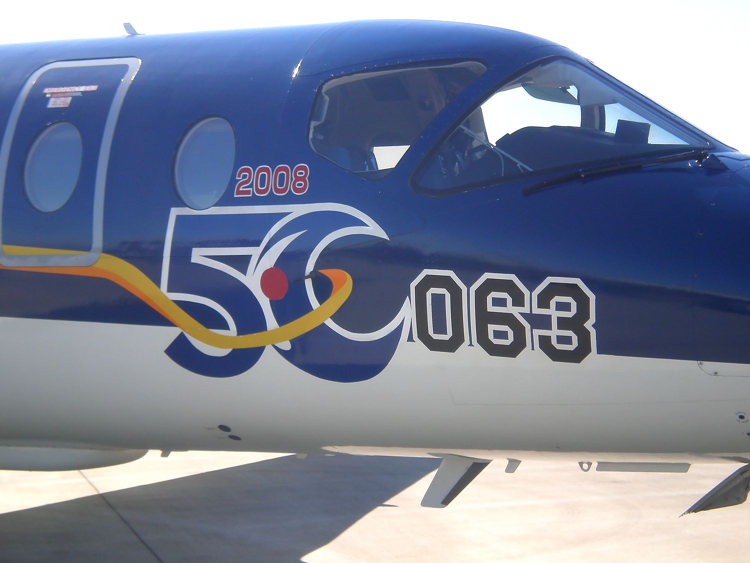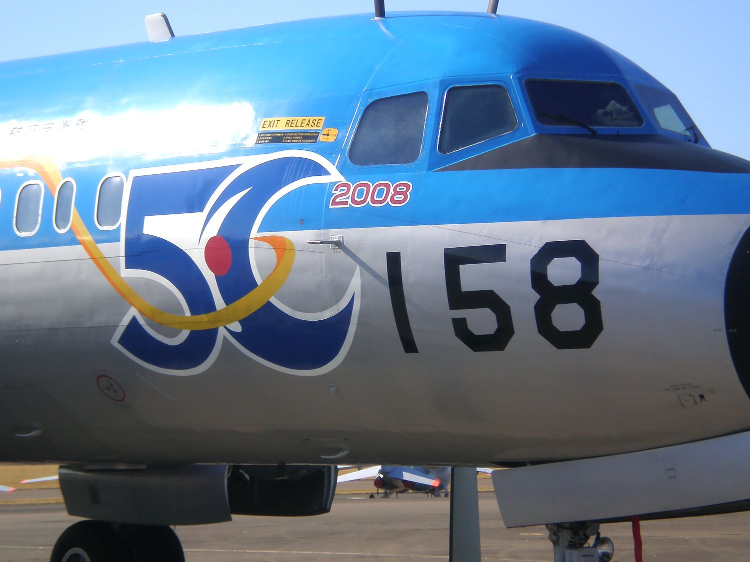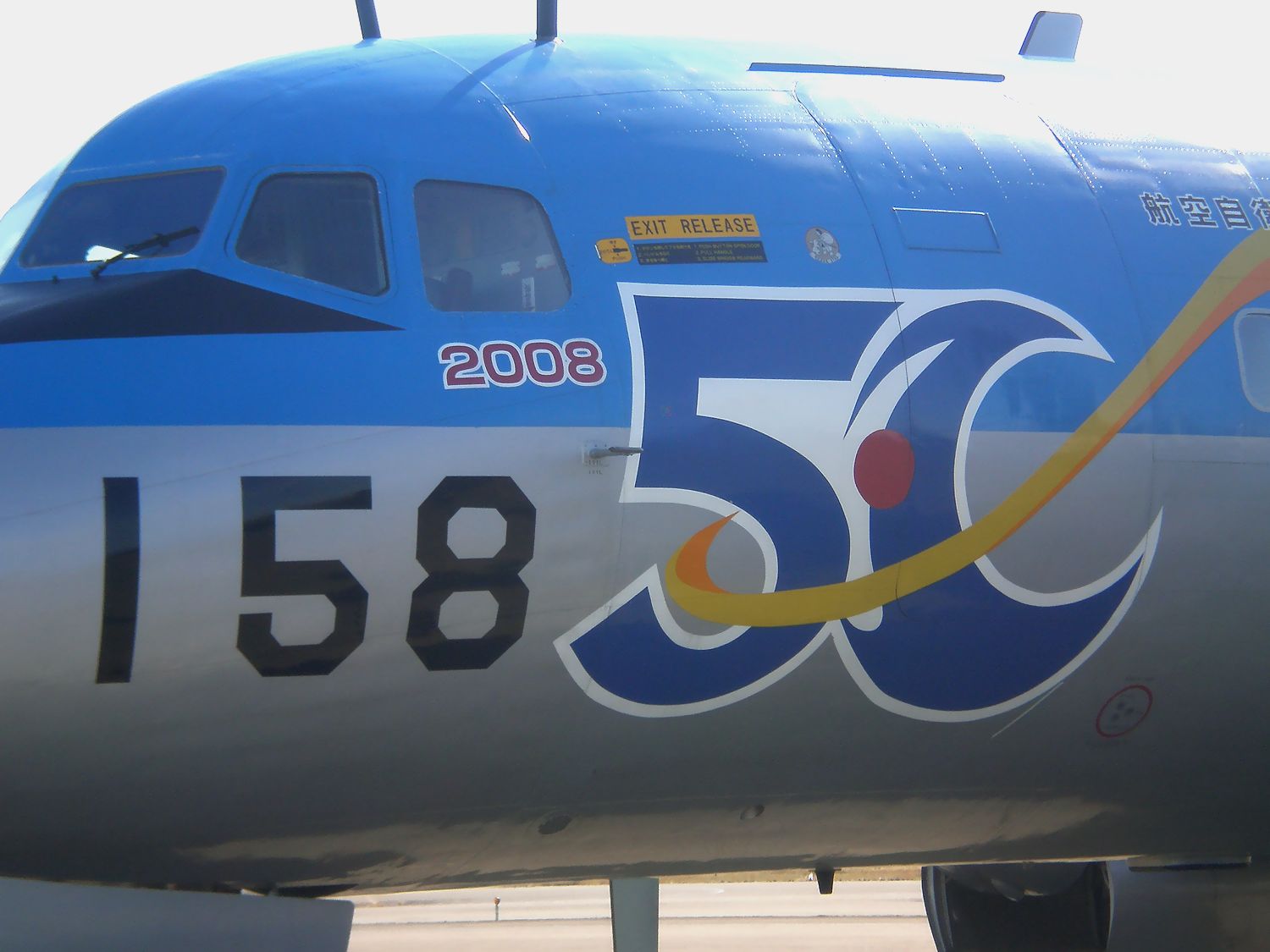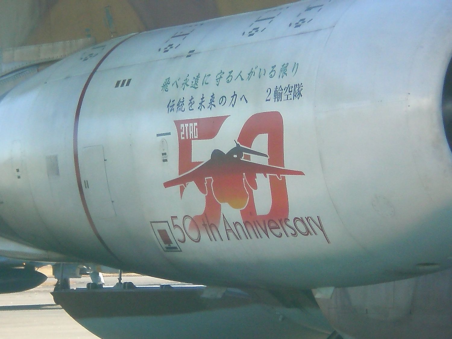 コンパクトデジカメで撮影しました。航空自衛隊入間基地 の 創立50周年記念塗装 の 第2輸送航空隊C1輸送機です。