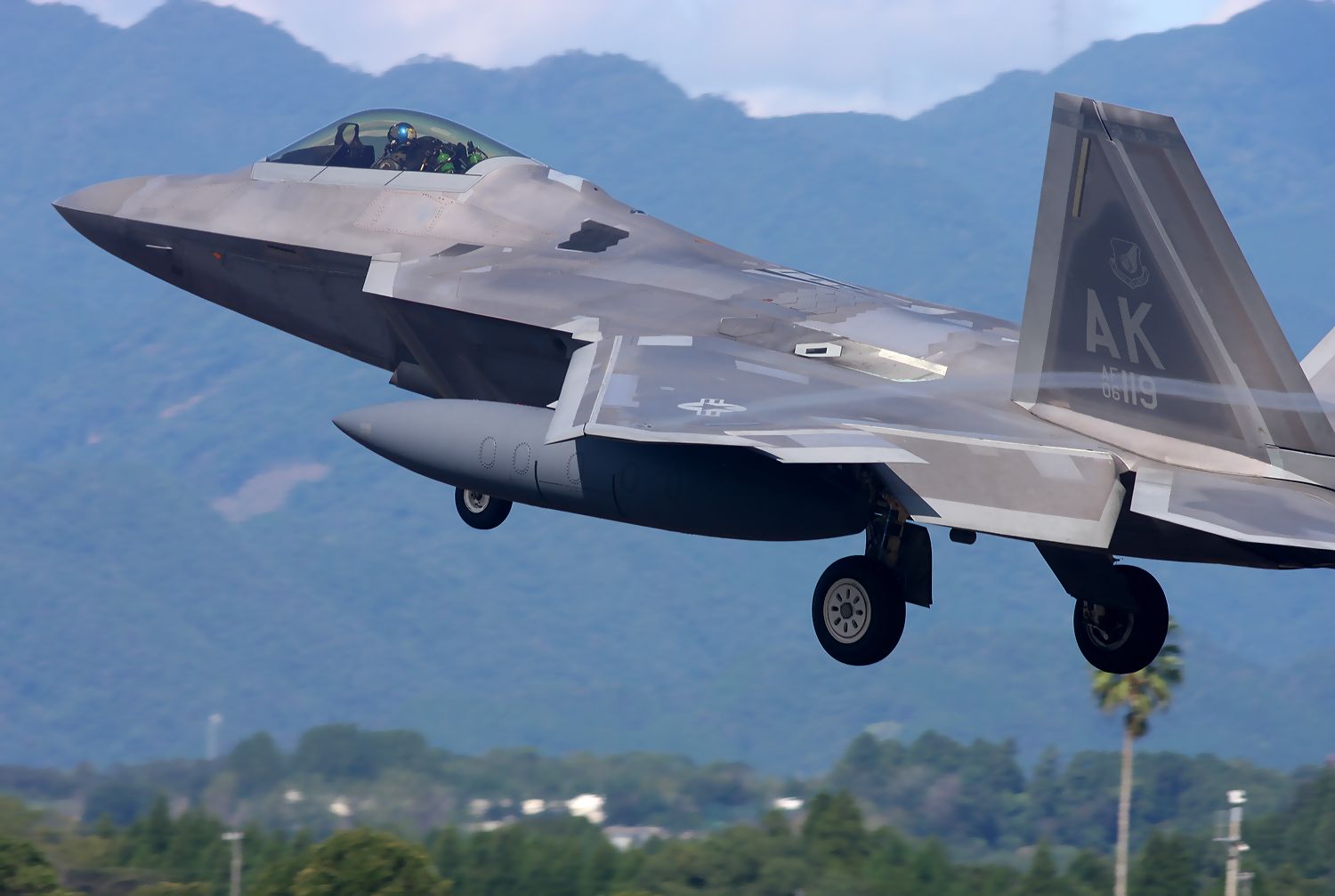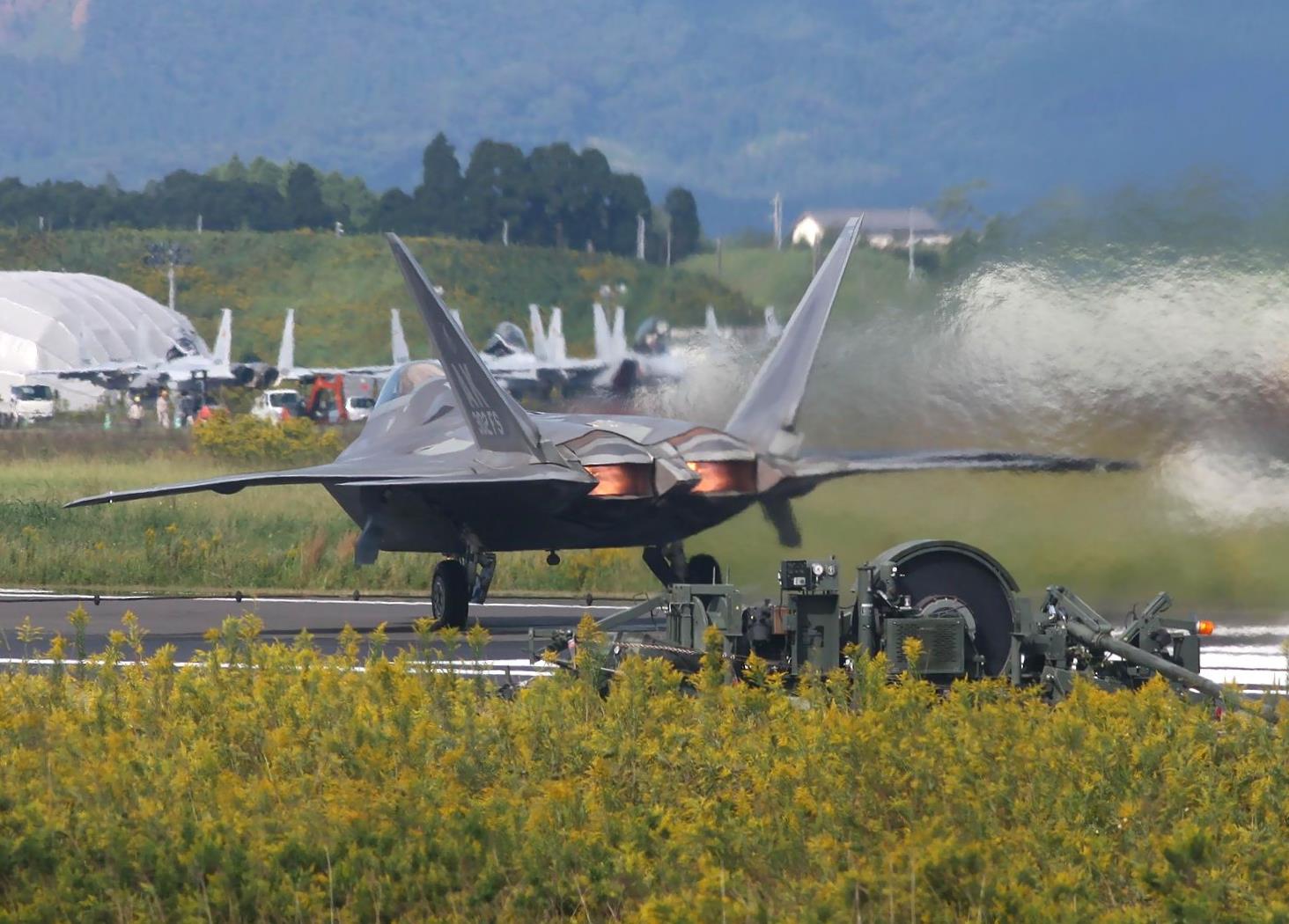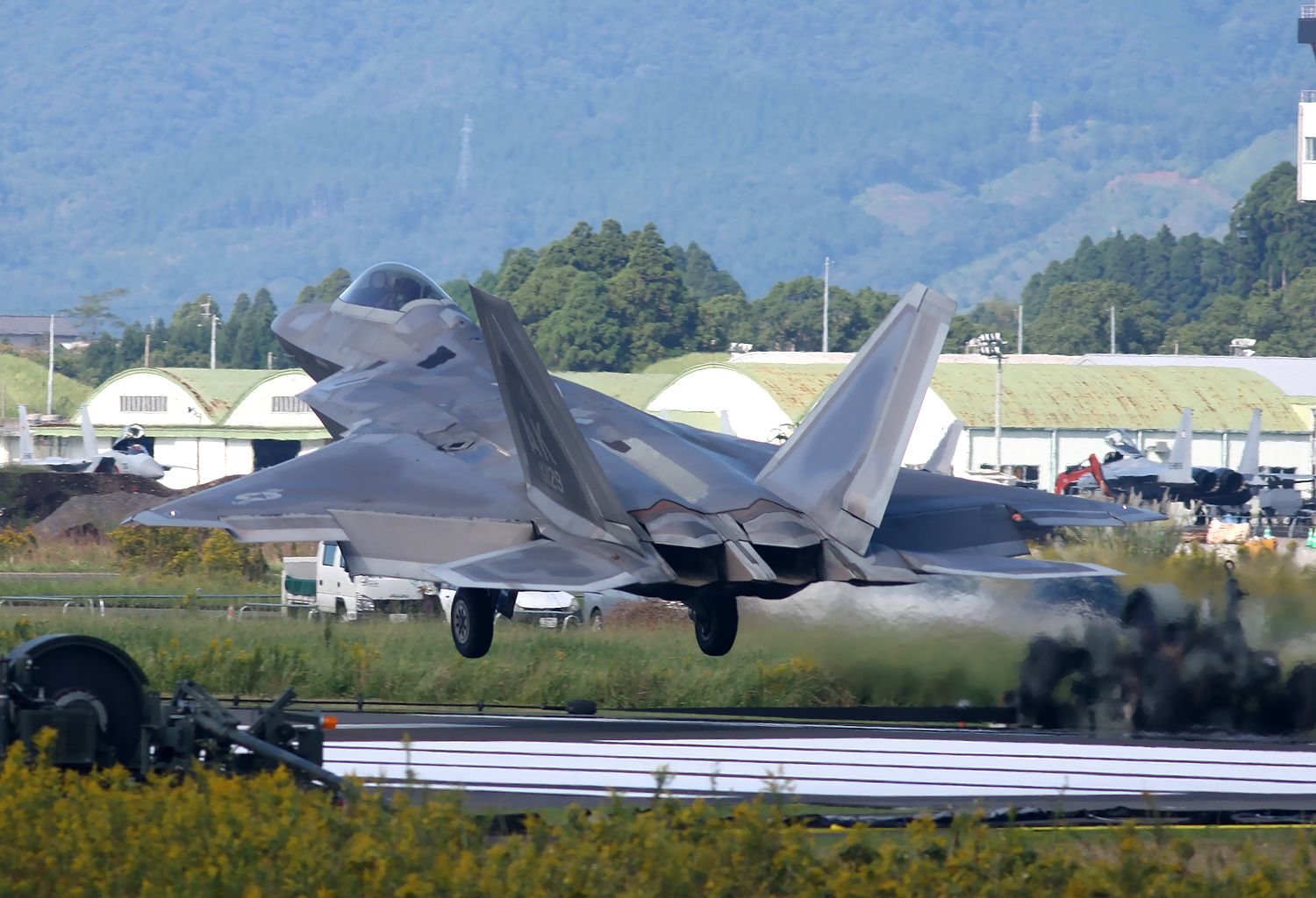新田原基地には、嘉手納基地に暫定配備されている AKレターのF22Aが展開しました