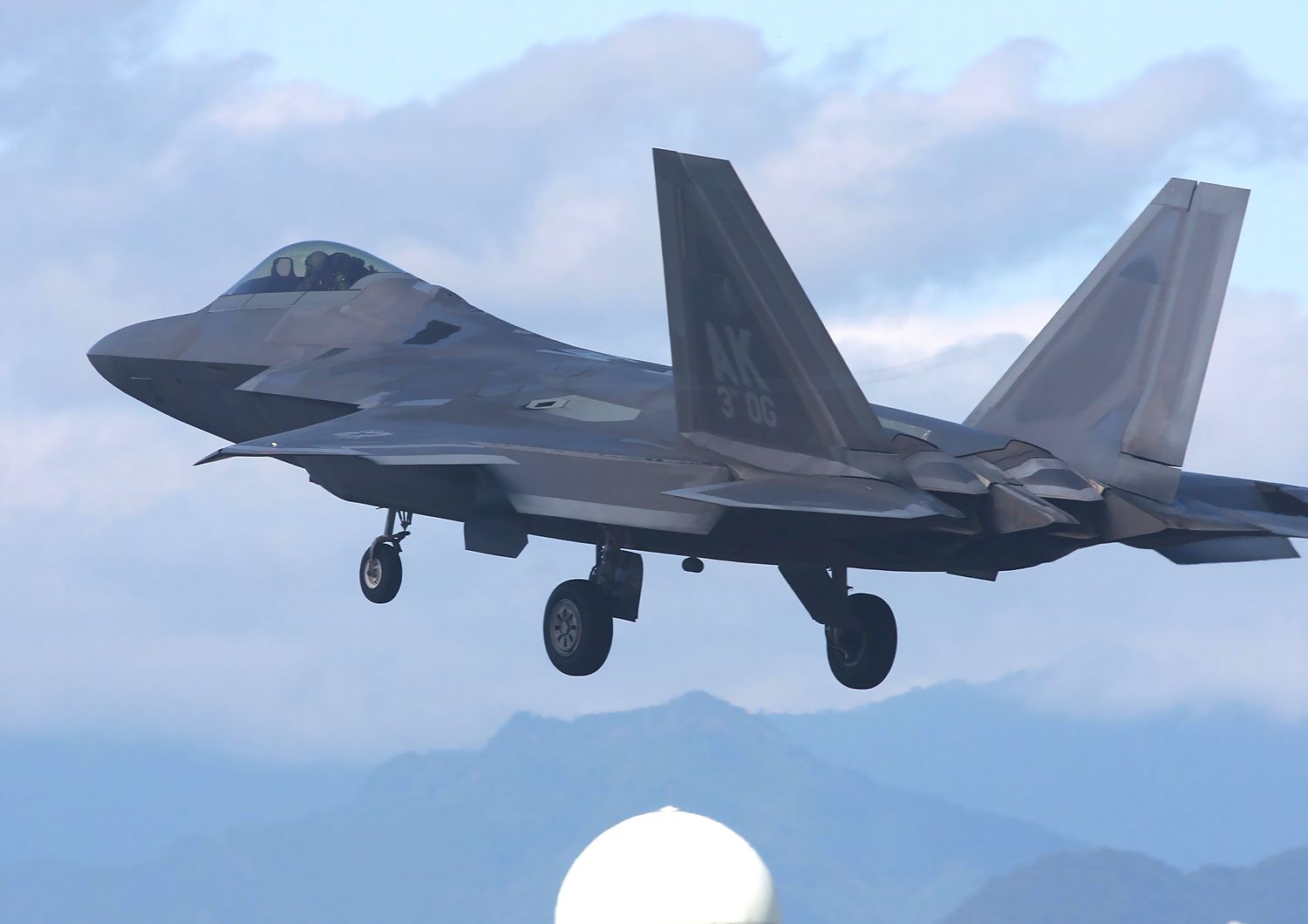 これは、2024年10月23日に撮影した、米アラスカ州エレメンドルフ空軍基地所属 第11空軍 525FSのF22Aのランディングです。