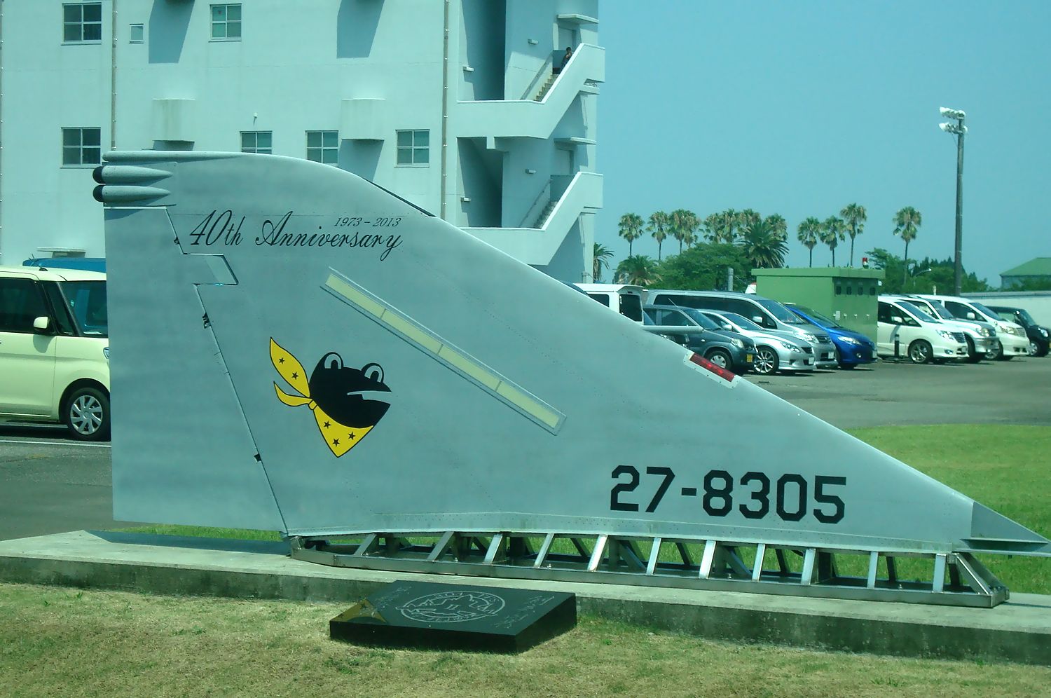ちなみに、2016.08.01にこの機体を見たときは、すでに解体されて垂直尾翼部分のみが新田原基地内で展示されていました(3枚目写真)。 |