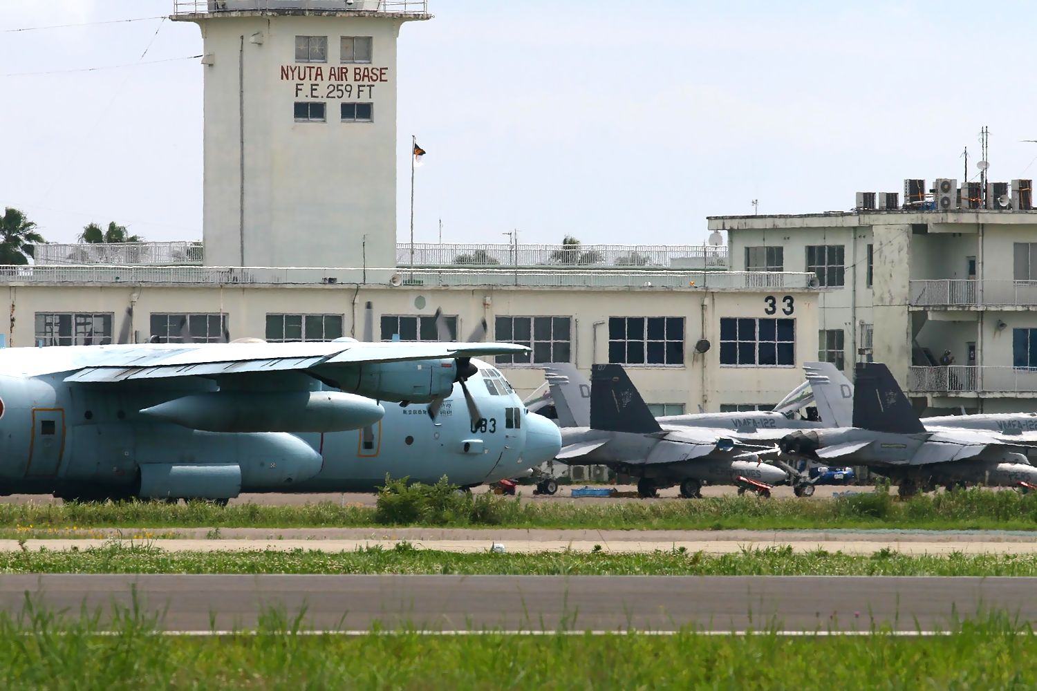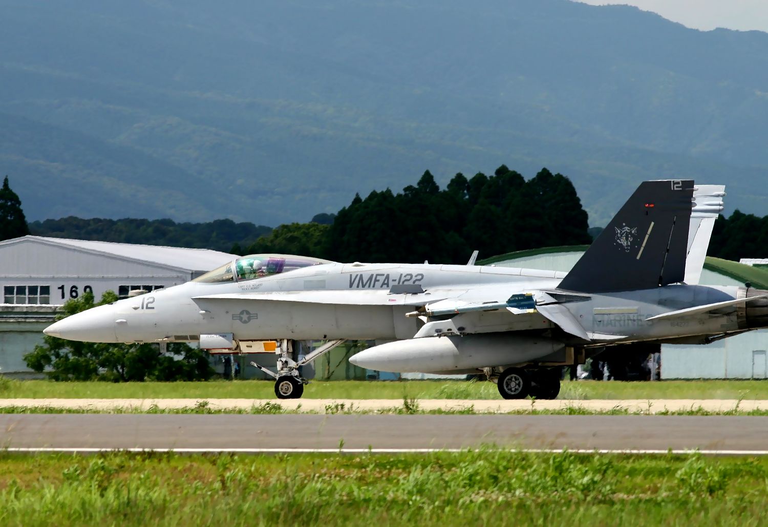 2013.06.18の午後に新田原基地で撮影した、301SQのF4EJ改とDACTを行った VMFA-122のFA18C(No.164274)の離陸です。 |