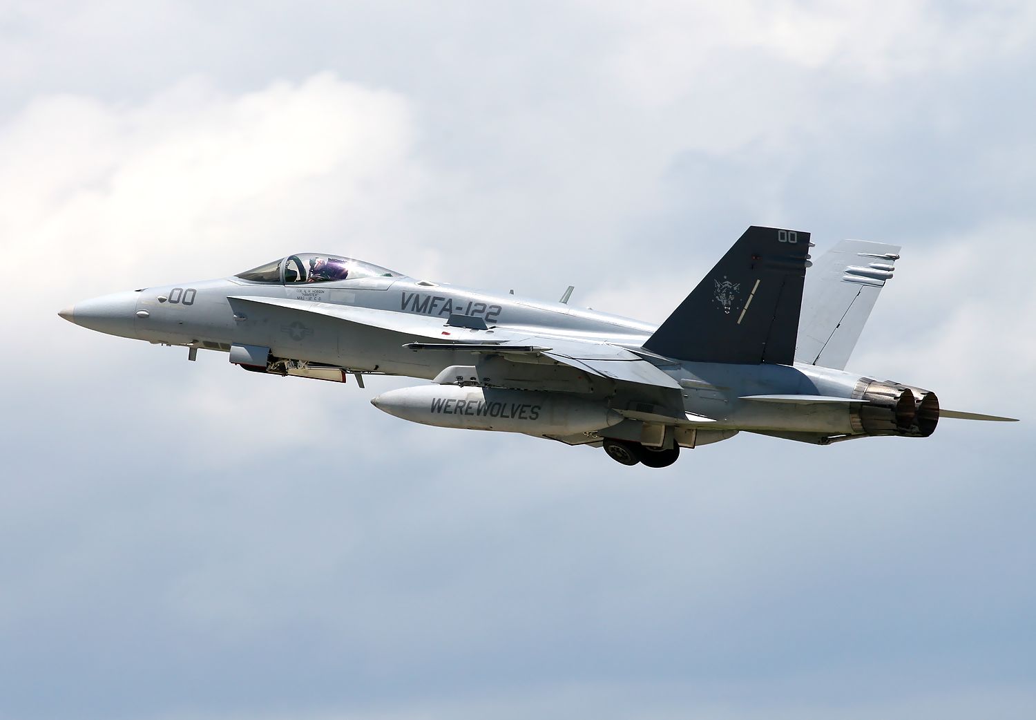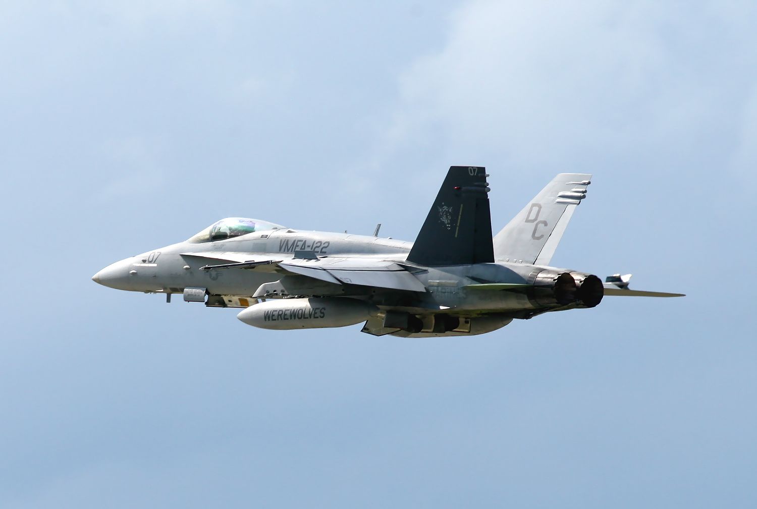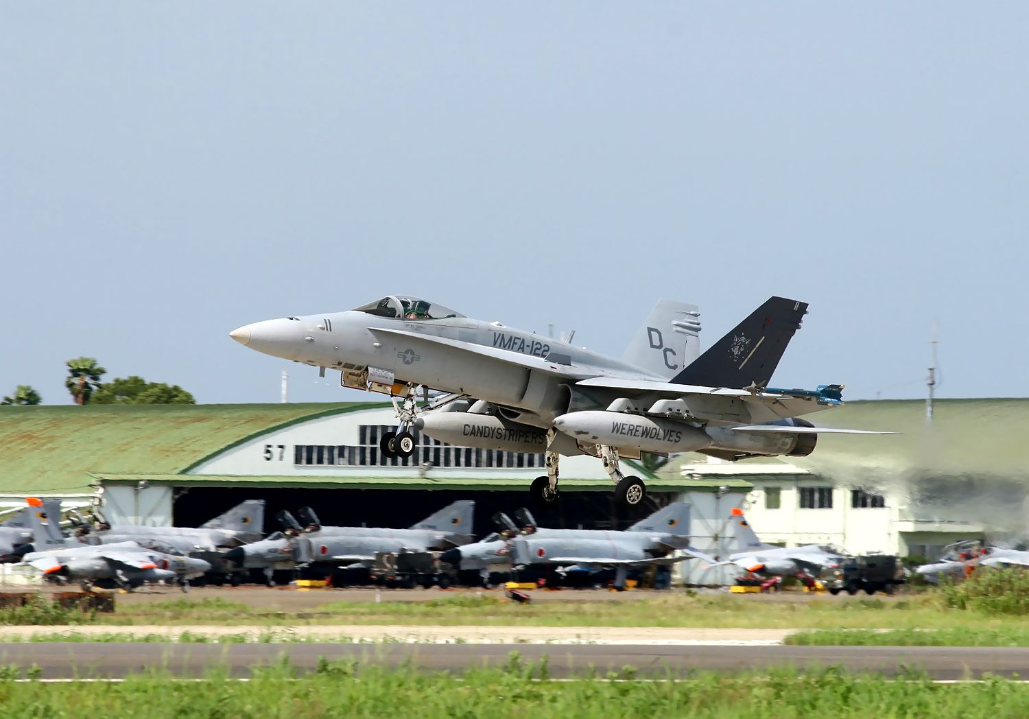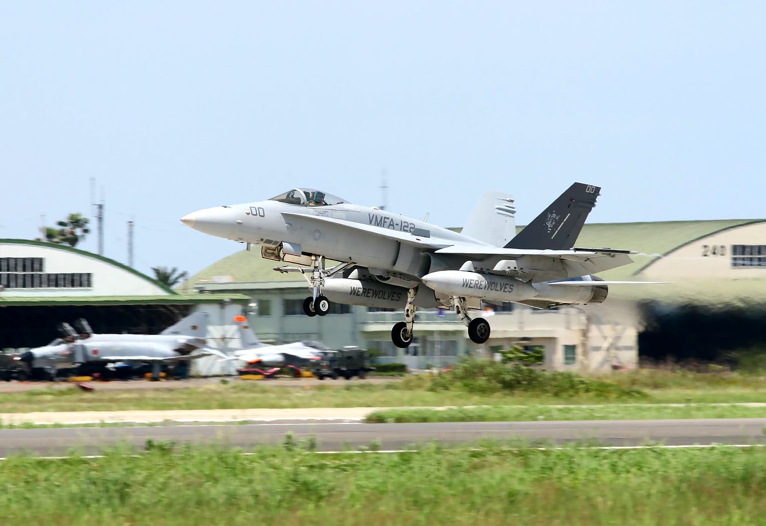 2013.06.18に新田原基地で撮影した VMFA-122 Werewolves のFA18C の編隊離陸です(3機目 No.164221。4機目164277)。 |