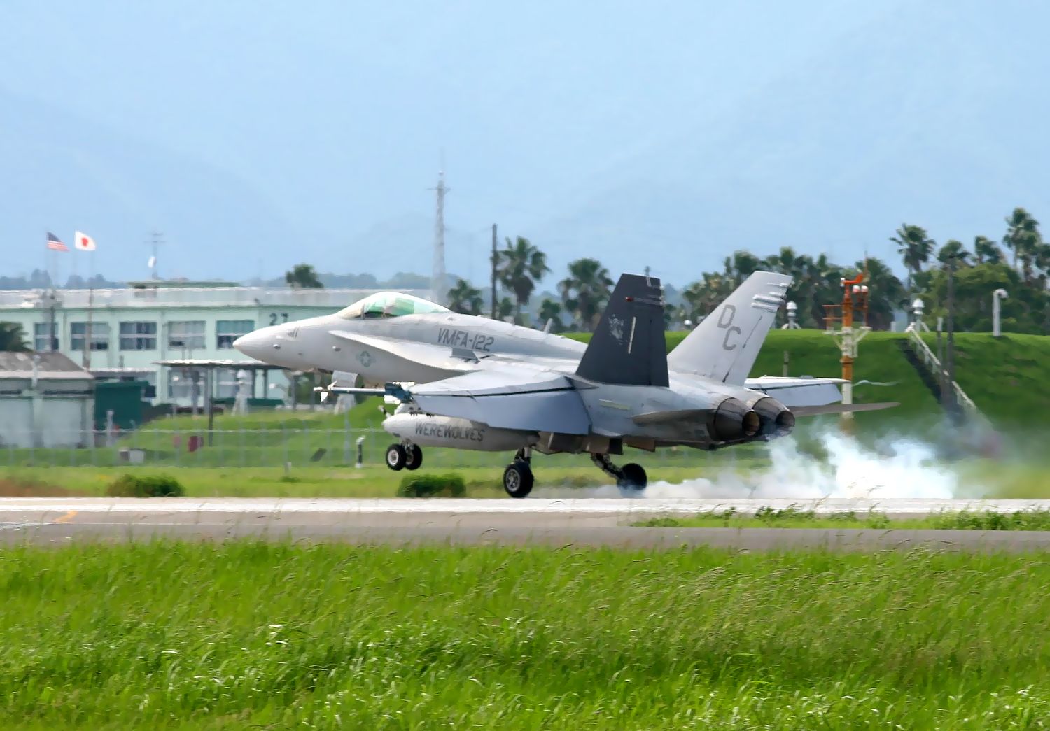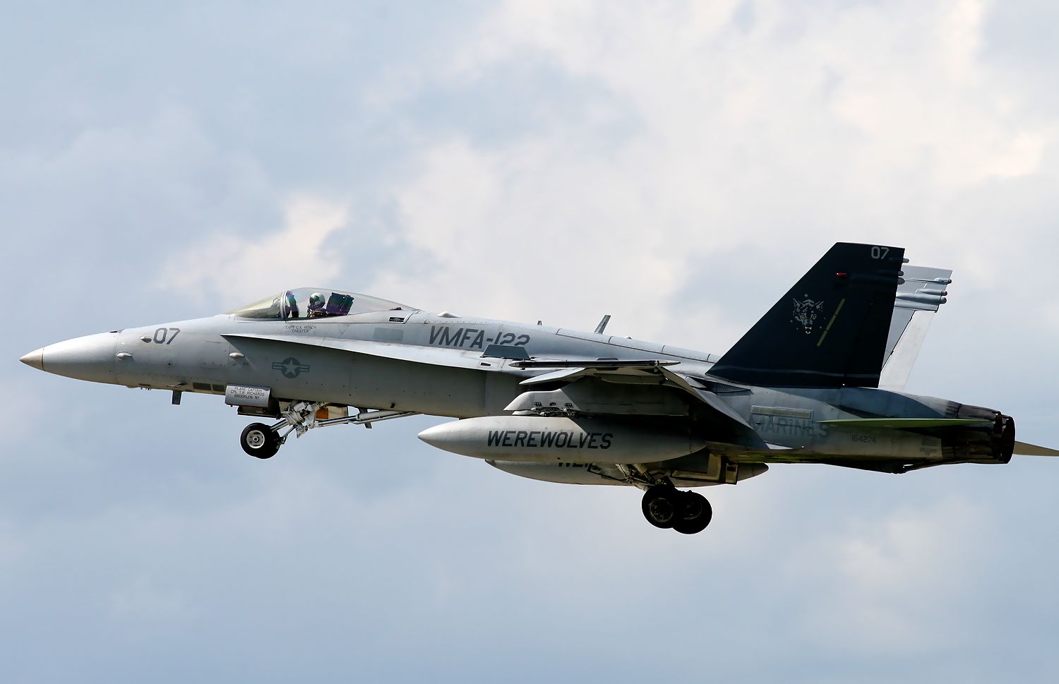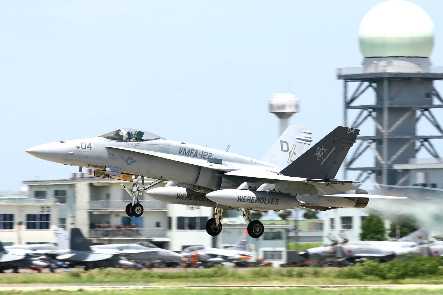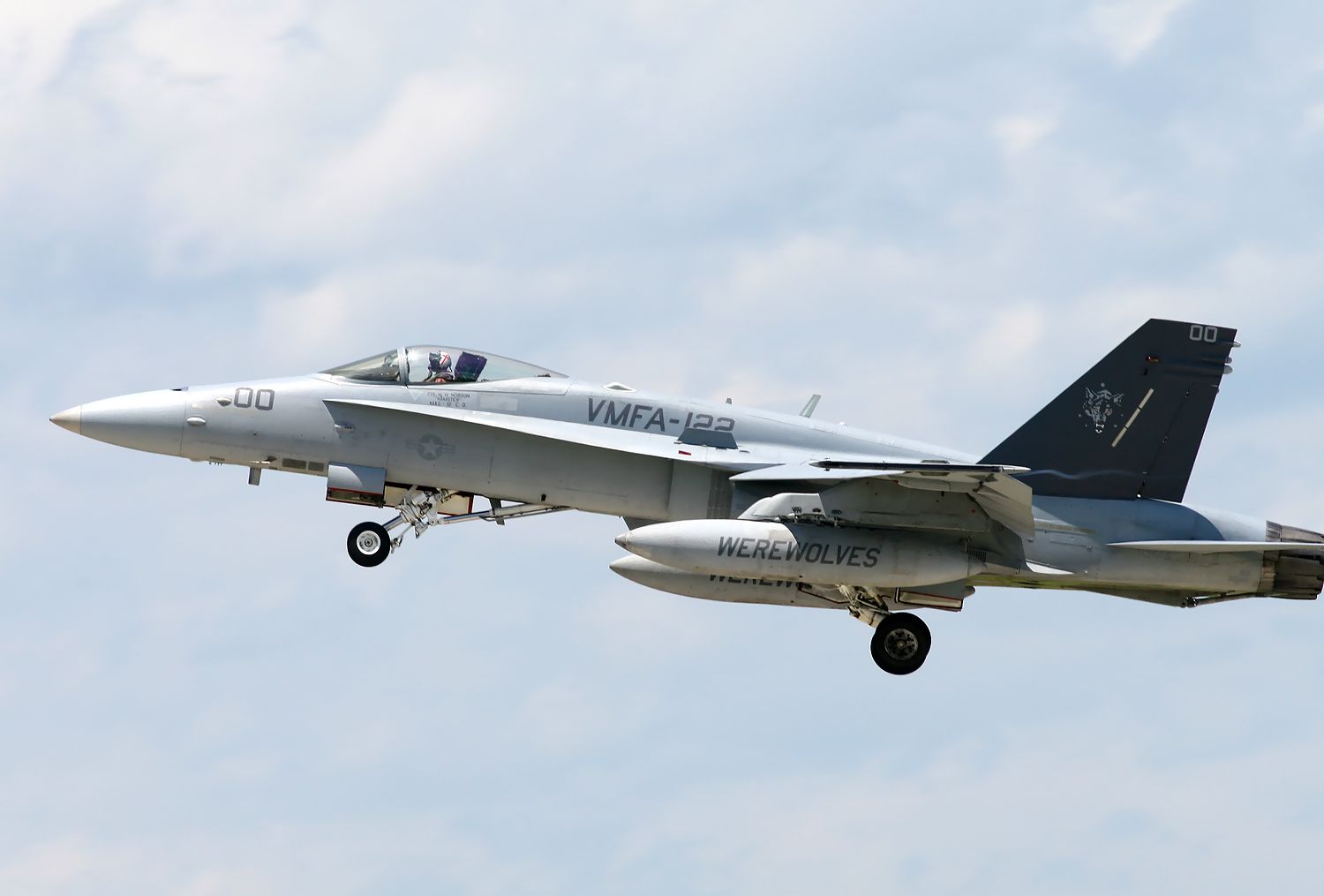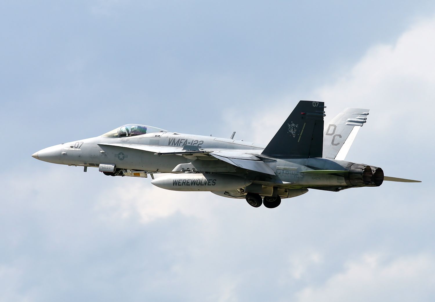 2013.06.18に新田原基地で撮影した VMFA-122 Werewolves のFA18C の編隊離陸です(3機目 No.164221。4機目164277)。 |