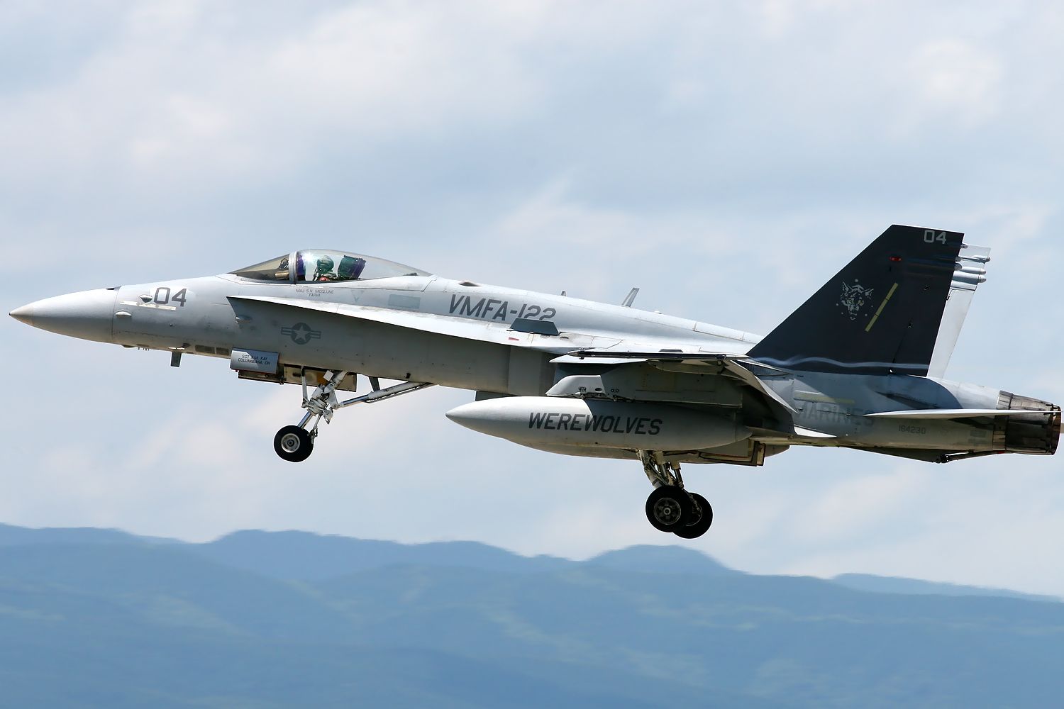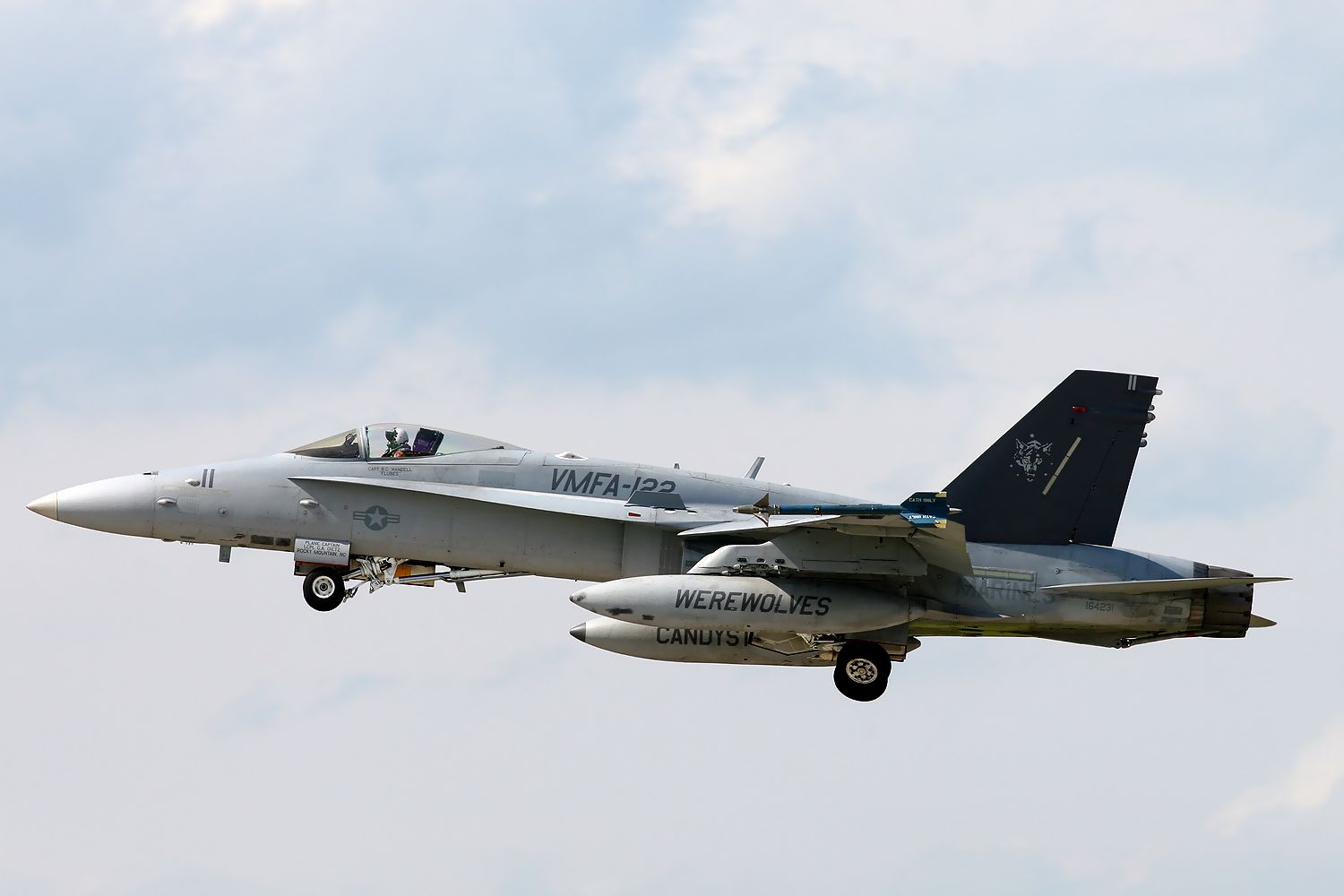 2013.06.18に新田原基地で撮影した VMFA-122 Werewolves のFA18C の離陸です(2機目 No.164230)。 |