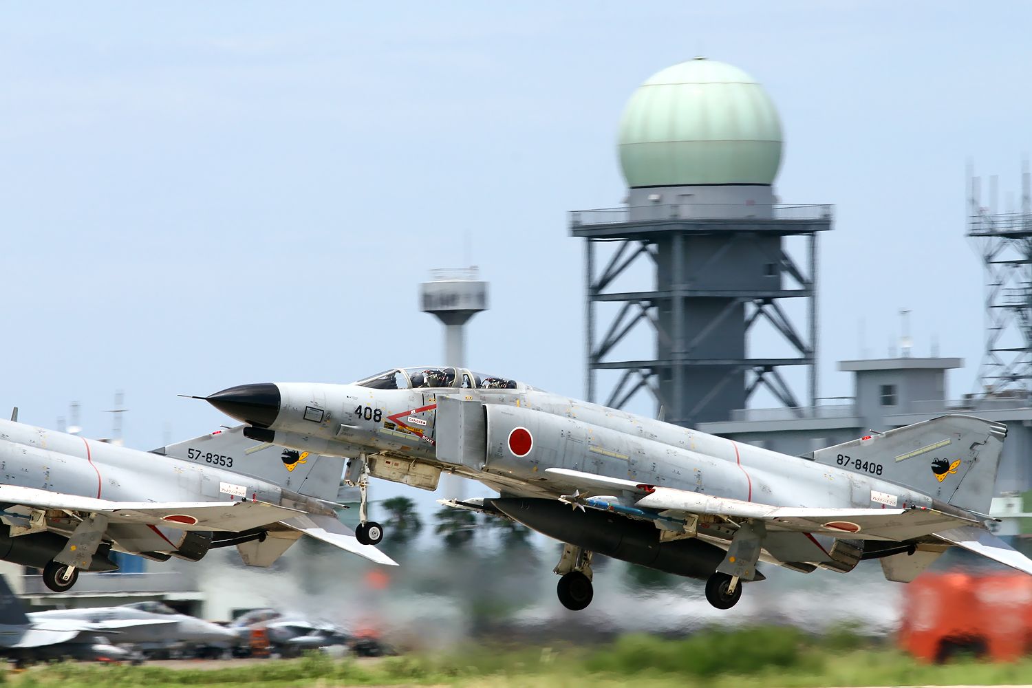 2013.06.18に新田原基地で撮影した 301SQのF4EJ改 408号機と353号機の編隊離陸です。