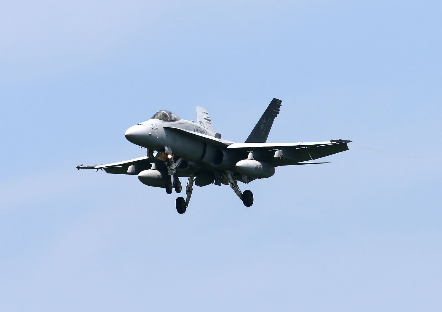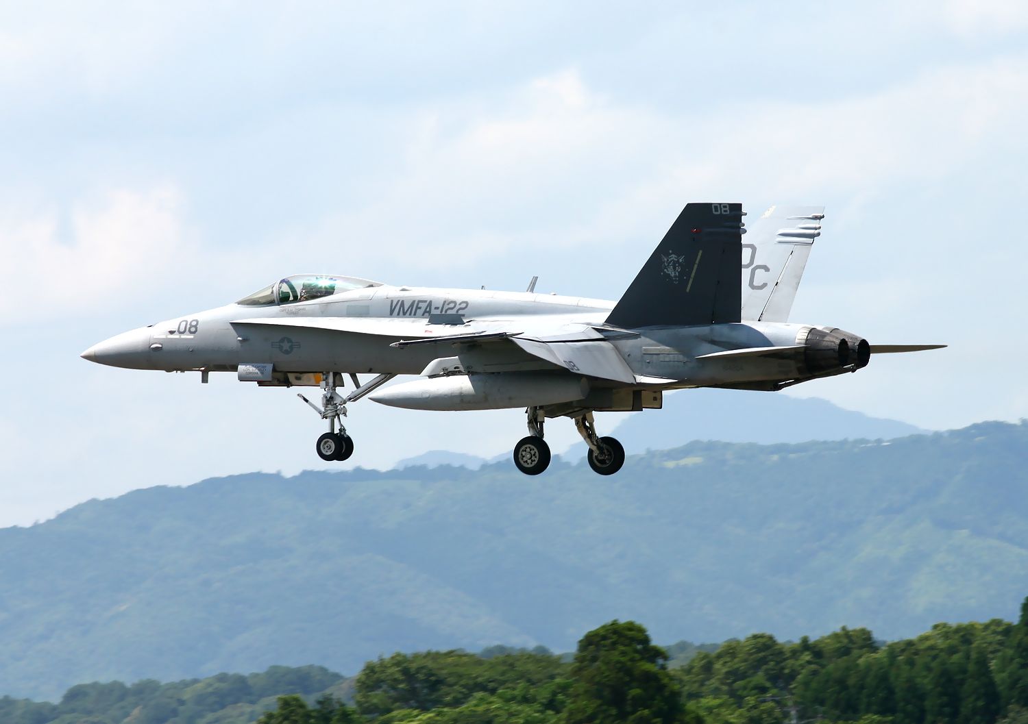 2013.06.18に新田原基地で撮影した、301SQのF4EJ改とDACTを行った VMFA-122のFA18C(No.164204)のランディングです(No.2)。 |