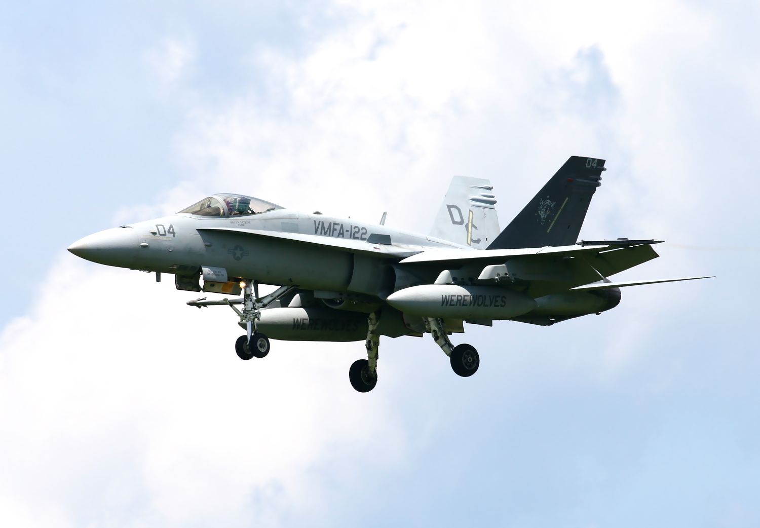 米軍からは、岩国基地米海兵隊 VMFA-122 Werewolves のFA18C が参加し、301SQのF4EJ改と訓練しました。